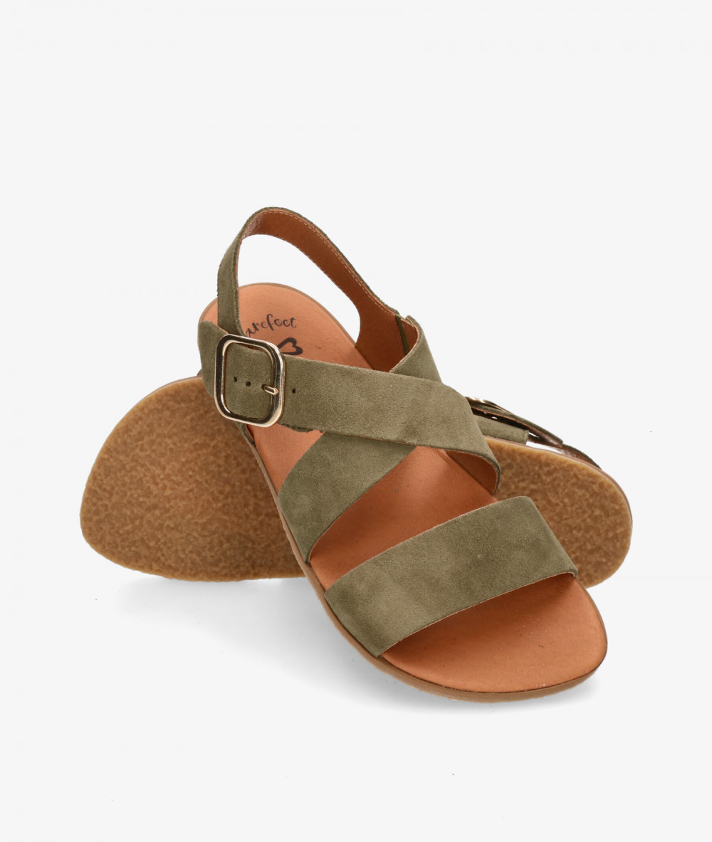 Smarten up your casual look with this kaki split suede Sandals from our pabloochoa.shoes collection