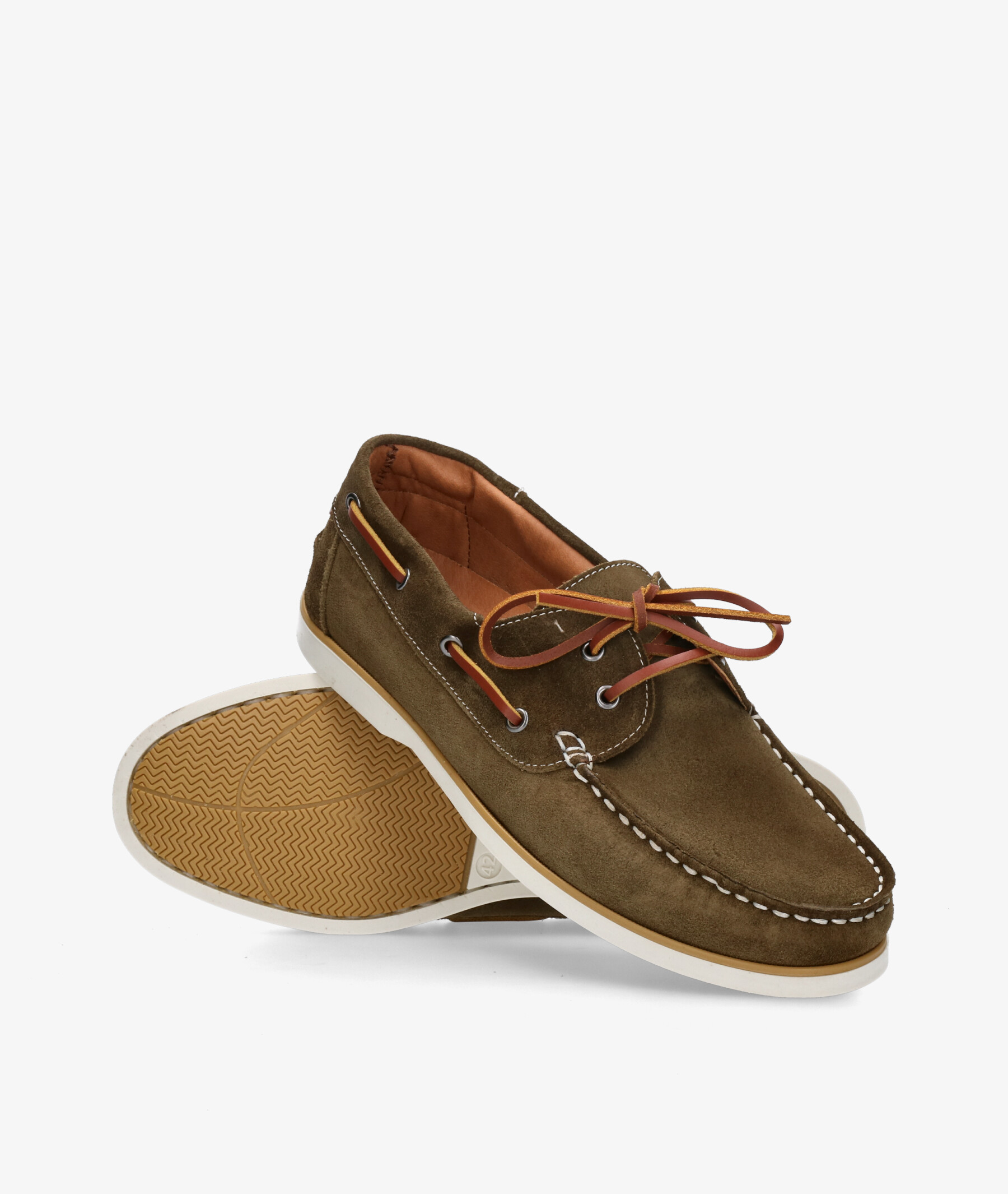 pabloochoa.shoes Nautical shoes 202503 in kaki split suede.Look stylish this season with this kaki split suede Shoes from our pabloochoa.shoes collection. Our glove shoes feature a combination of design, quality and comfort for your day to day outfits. They are composed of a very soft and comfortable construction, adapting to the feet as a glove and maintaining the brand fashion design.