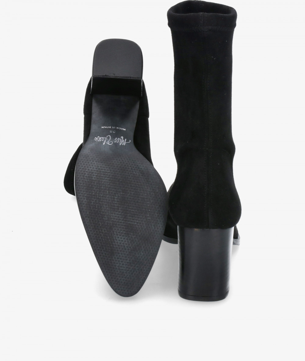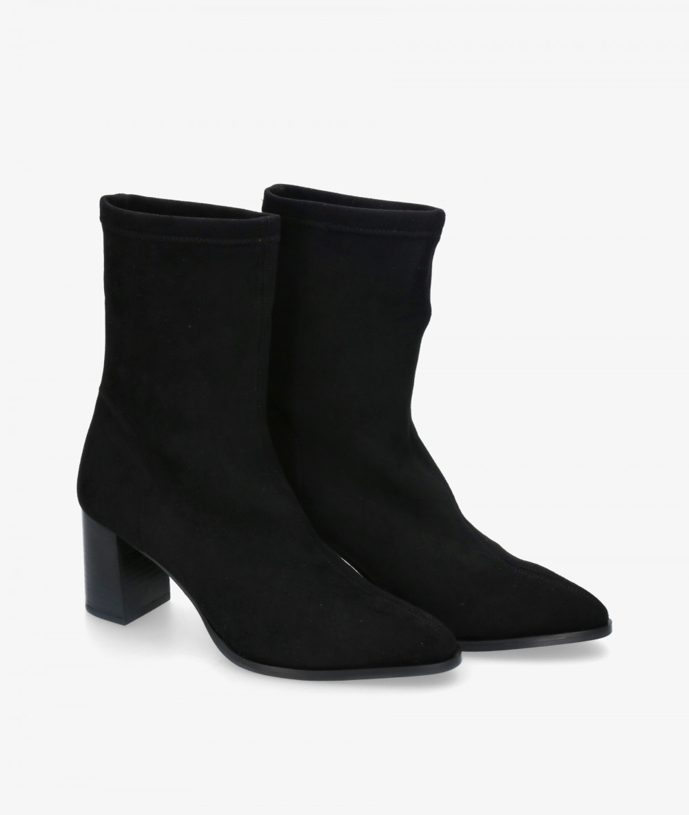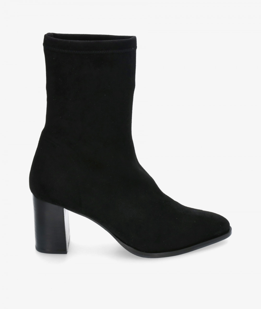 Botines pabloochoa.shoes 77047 en negro. Altura tacón 6,5cm. Sin cierre, slip on. La plantilla no es extraible. Hecho en España.