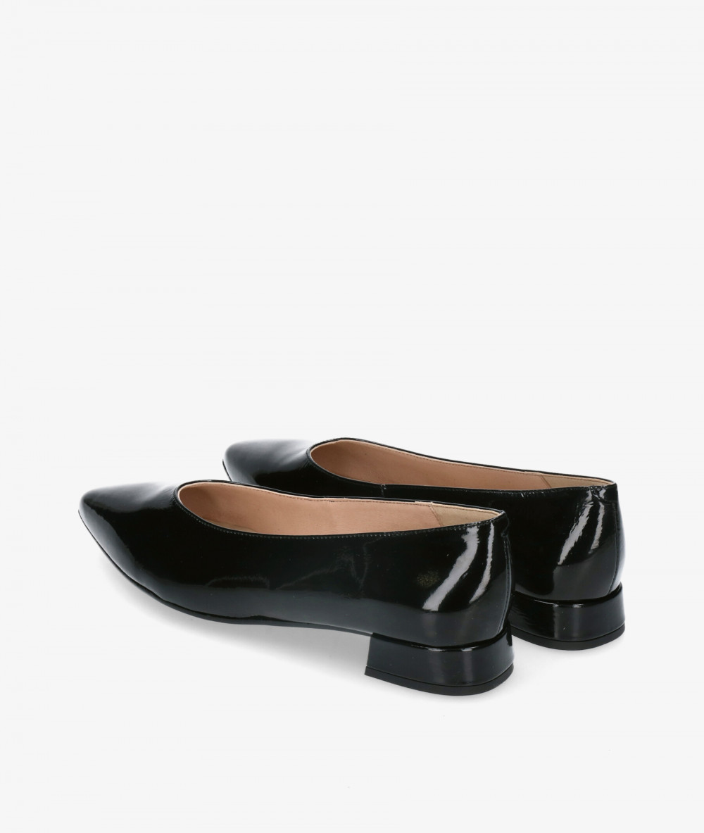 Salones bloom&you DAFNE en charol negro. Altura tacón 2cm. Sin cierre, slip on. La plantilla no es extraible. Hecho en España.