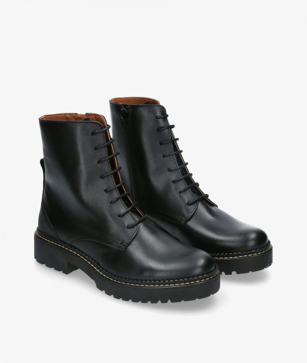Botines bloom&you FLAVIA en negro. Cierre con cremallera y cordones. La plantilla no es extraible. Hecho en España.