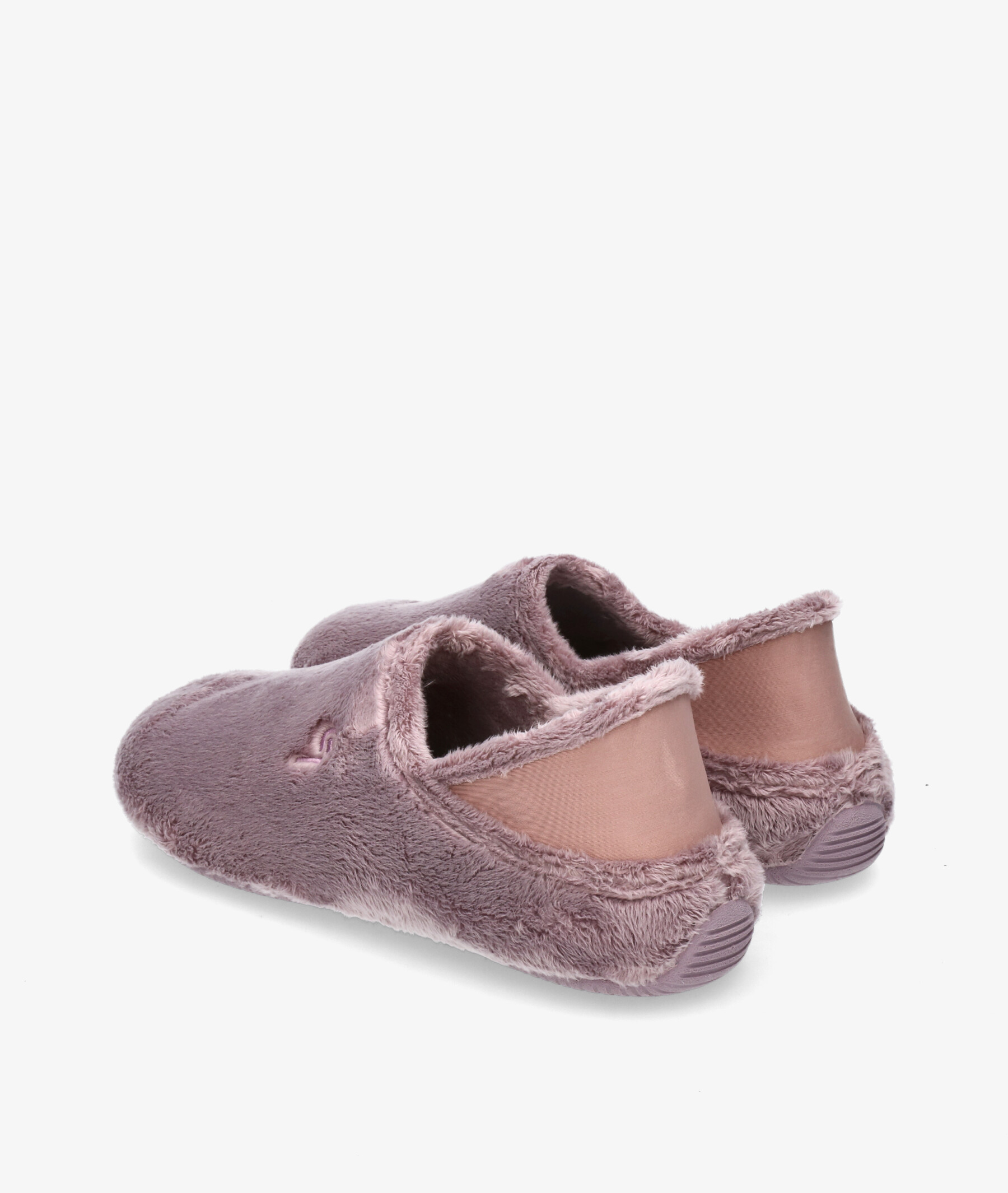 Zapatillas de casa Garzón 15651.275 en malva. Sin cierre, slip on. La plantilla no es extraible. Hecho en España.