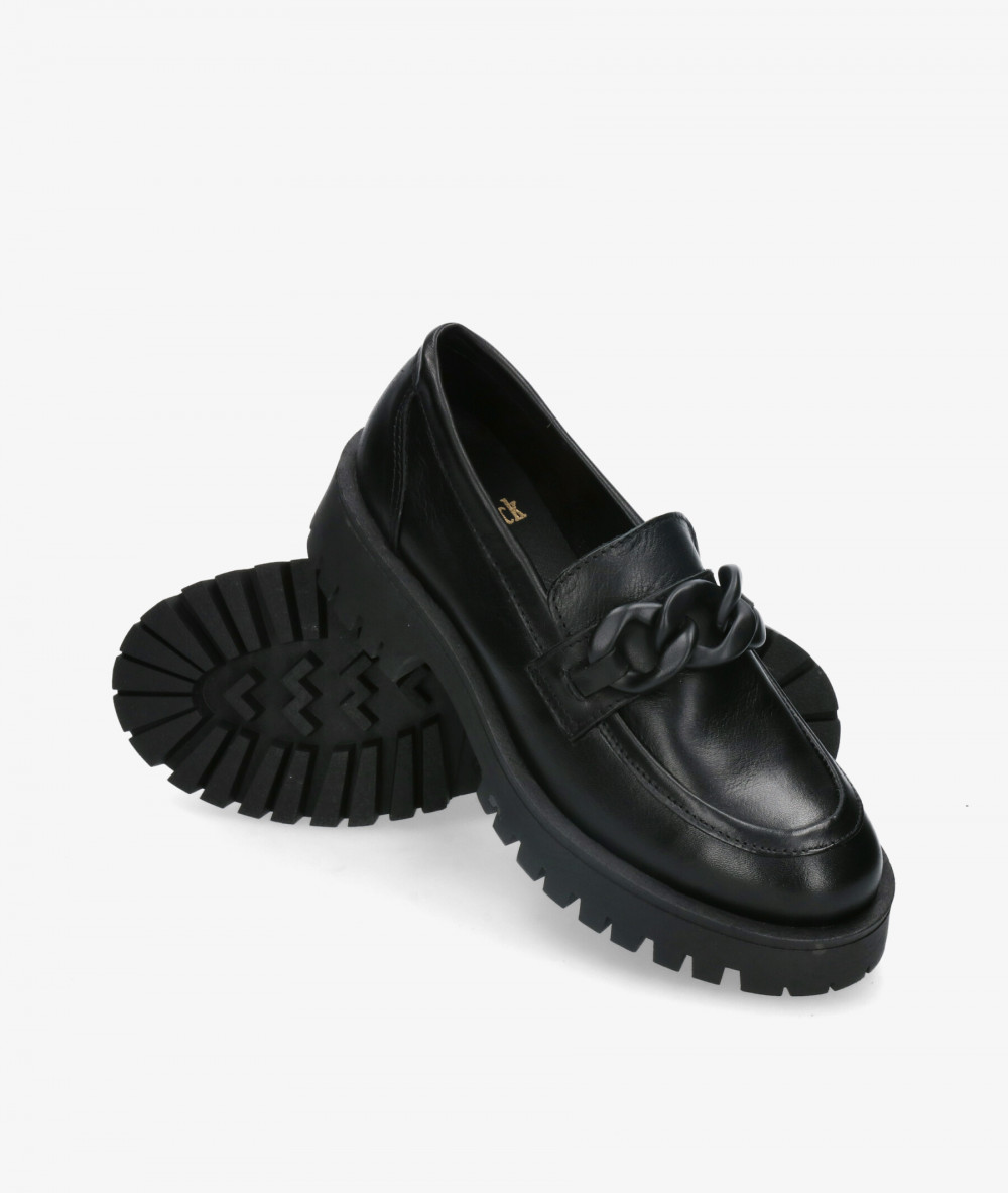 DOBLE PISO Rhostock 14033 en negro. Tacón 4cm, plataforma 2,5cm. Sin cierre, slip on. La plantilla no es extraible. Hecho en España.