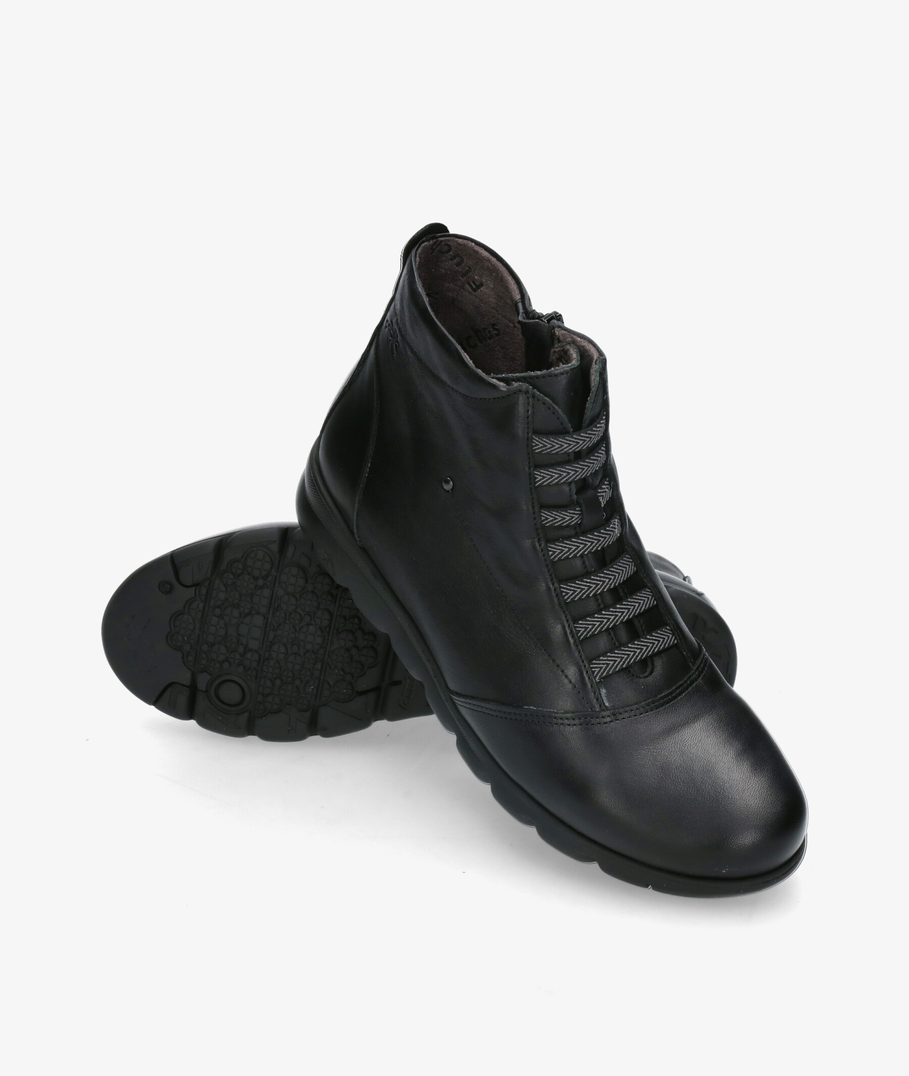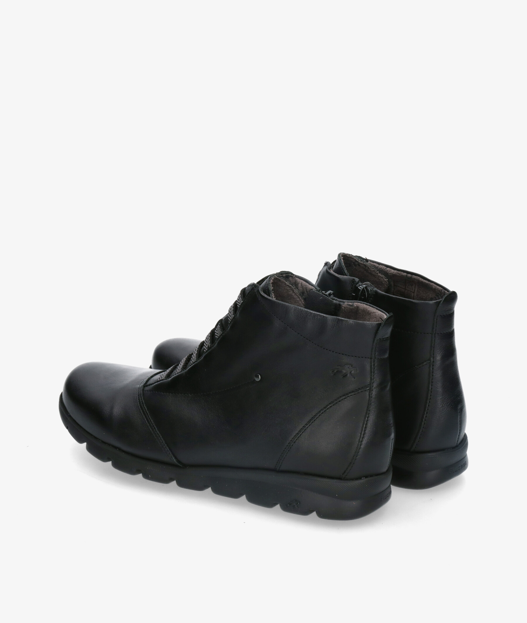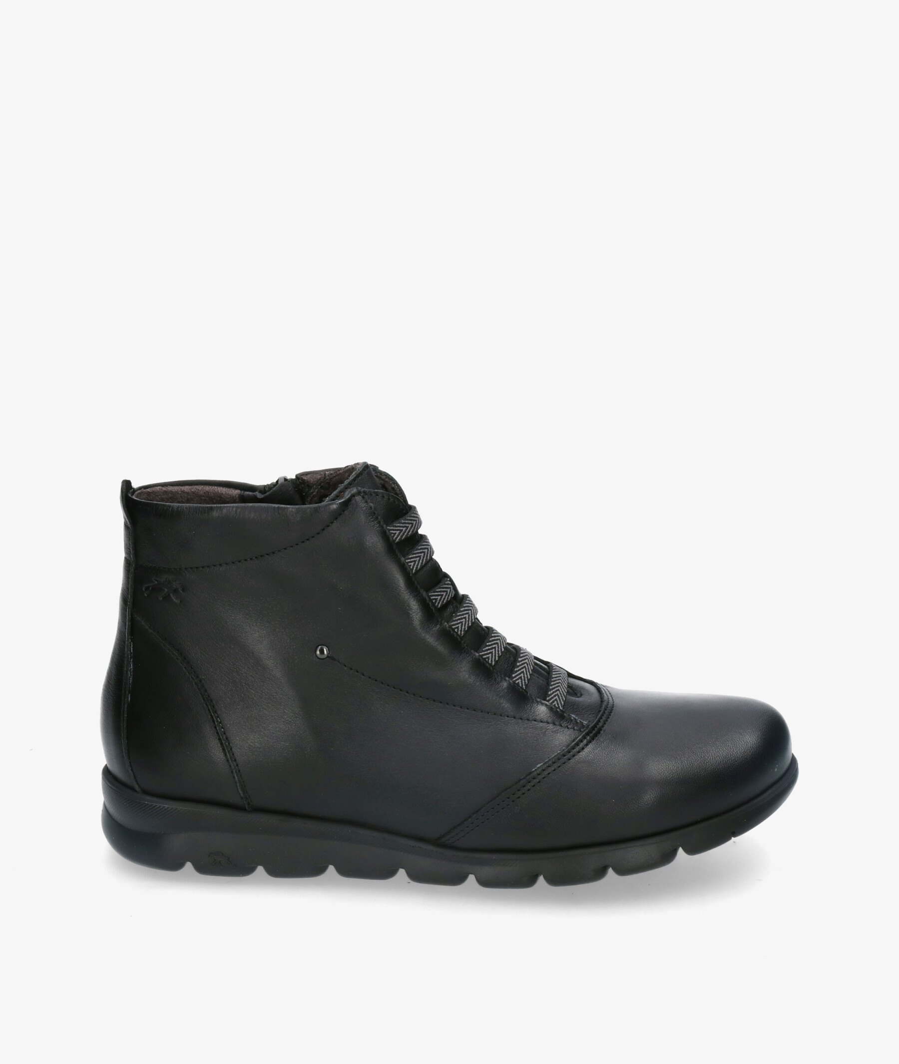 Botines Fluchos F0356 en negro. Cierre con cremallera en la parte interior. La plantilla es extraible. Hecho en España.