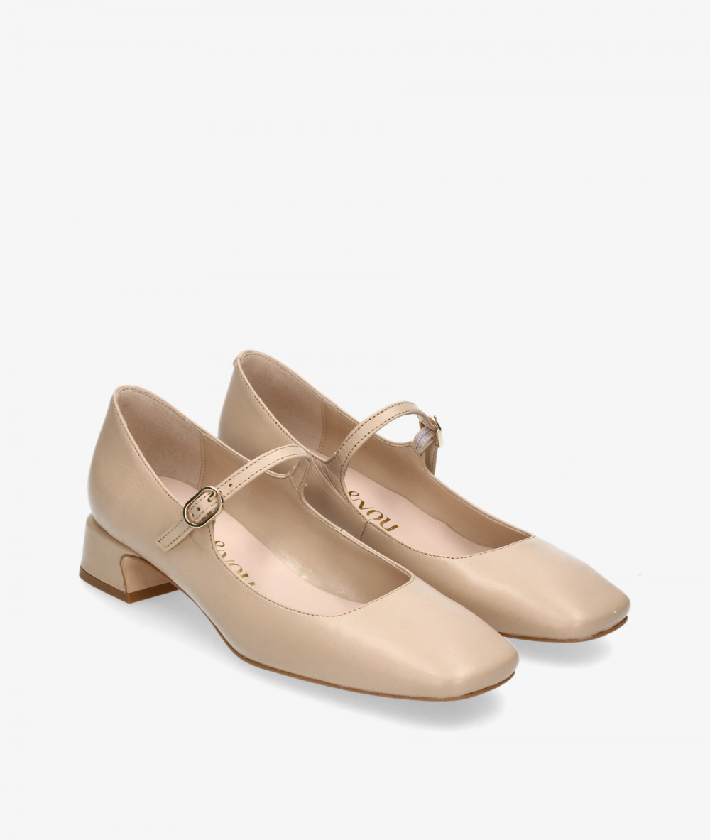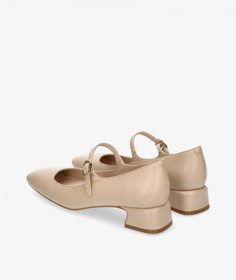Zapatos de vestir bloom&you SOFIA en beige. Altura tacón 3cm. Cierre con hebilla en un lateral. La plantilla no es extraible. Hecho en España.