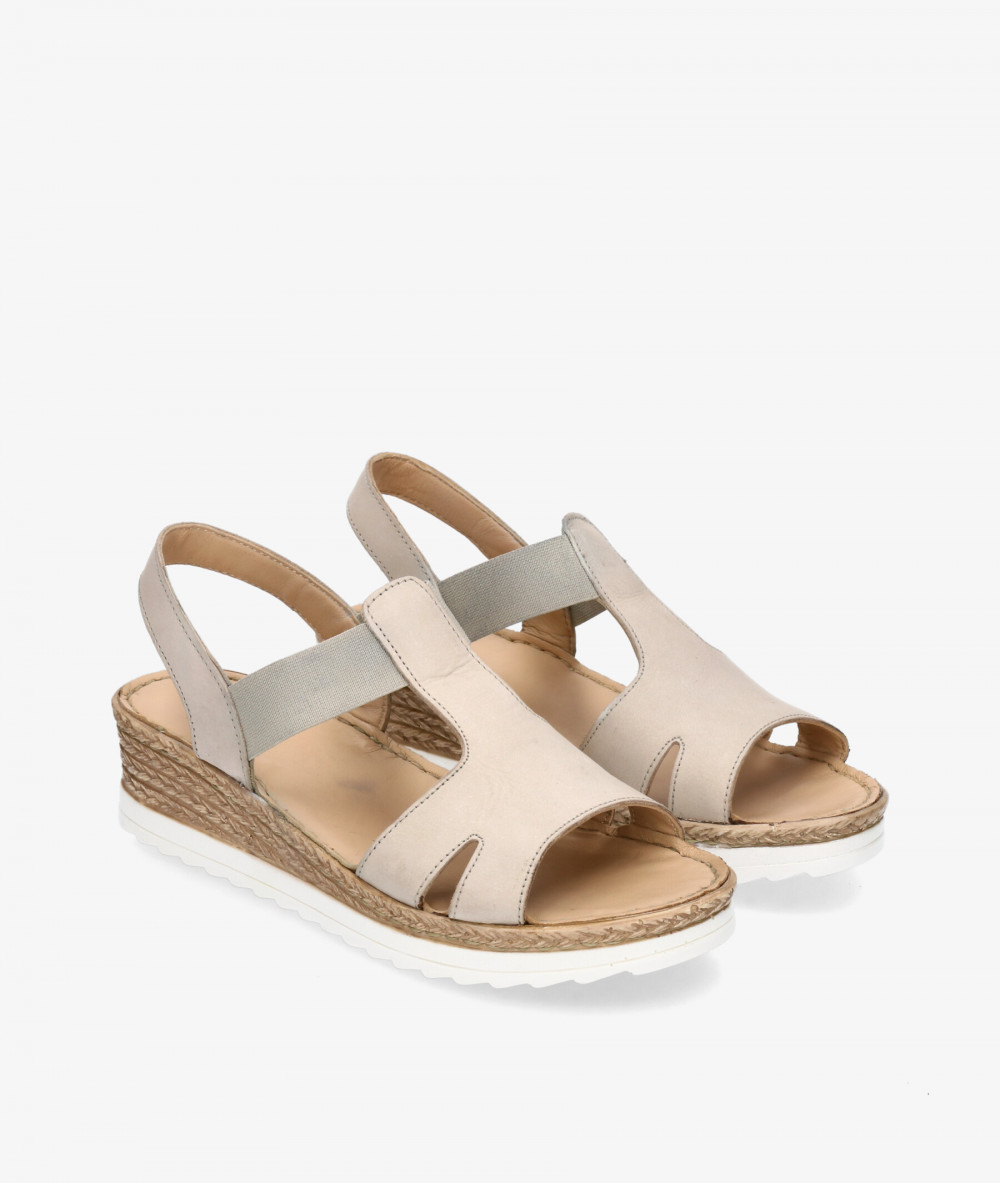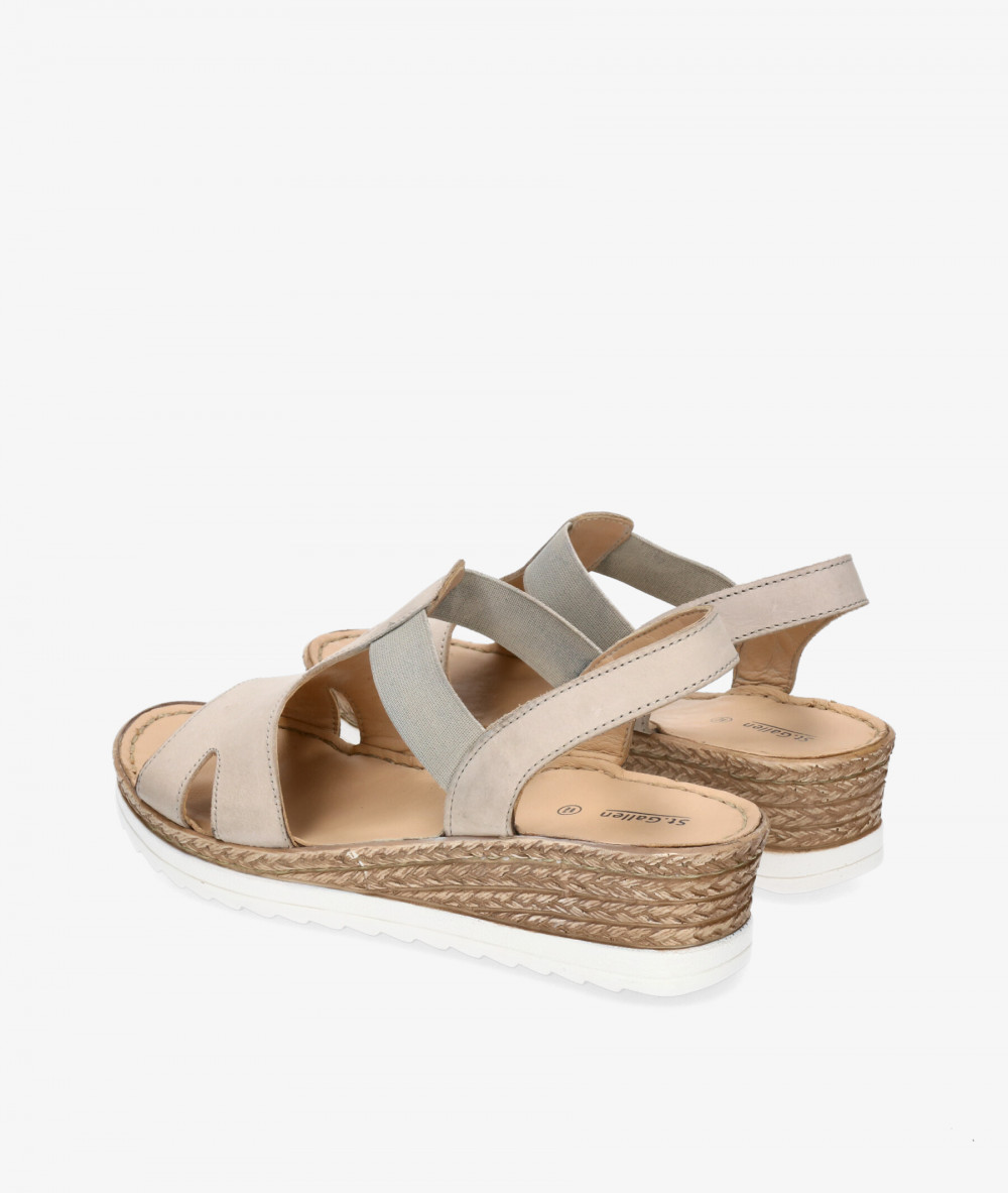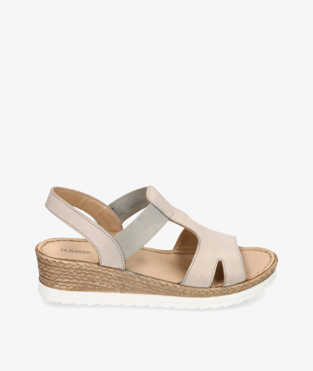 Sandalias St. Gallen CIRELLA en hueso. Cuña 4,5cm, plataforma 2cm. Cierre con elásticos . La plantilla no es extraible. Hecho en India