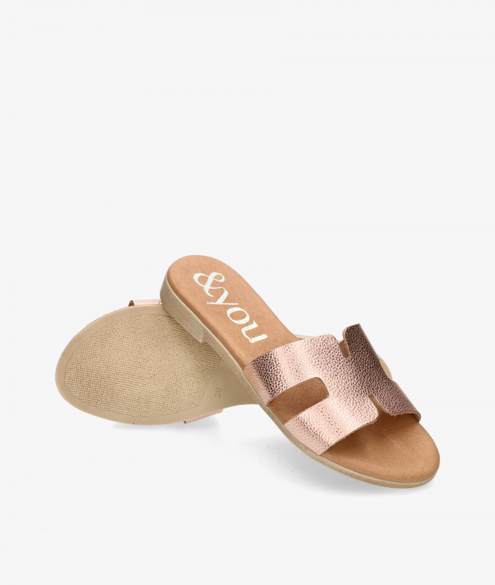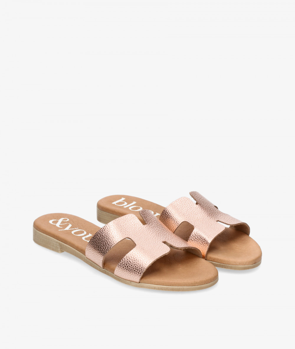 Sandalias bloom&you SENNA en nude metalizado. Altura tacón 1,5cm. Sin cierre, slip on. La plantilla no es extraible. Hecho en España.