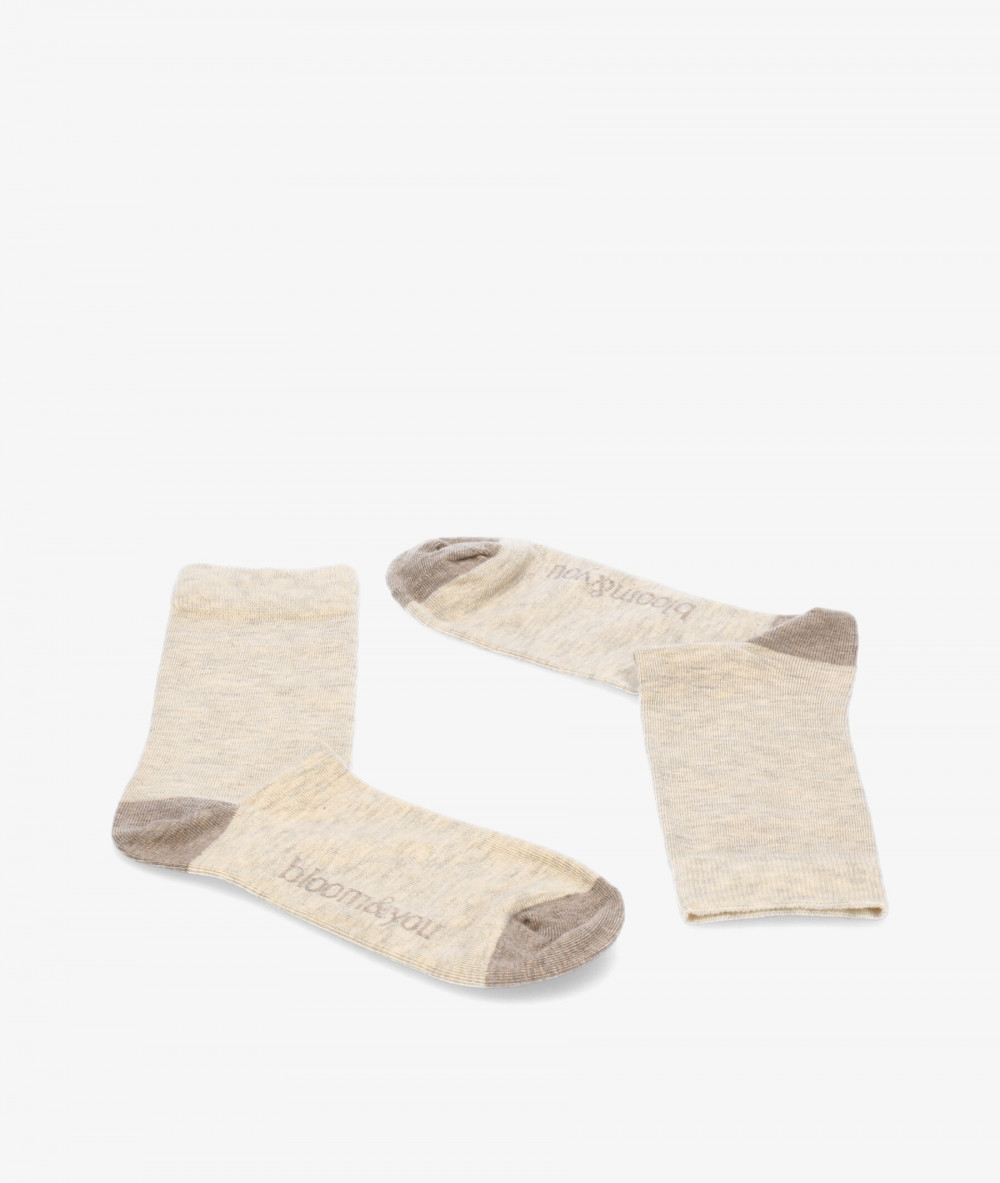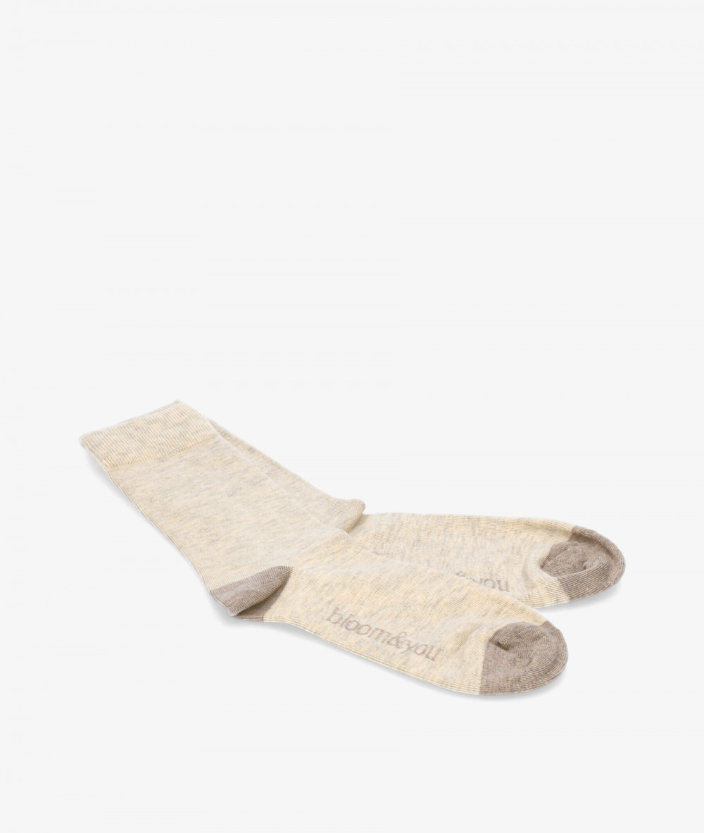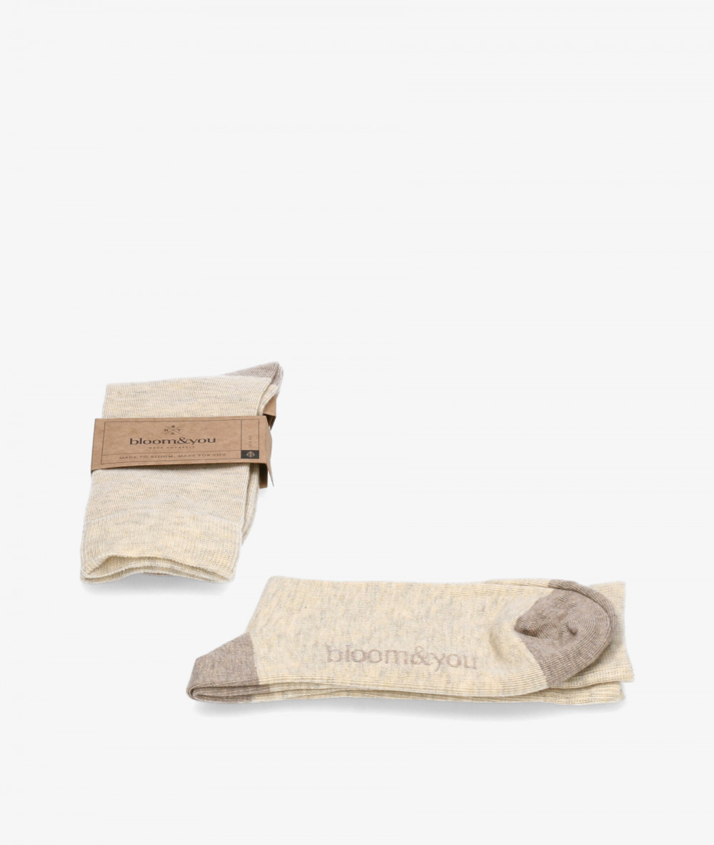 Calcetines bloom&you en beige. . Nuestros Bloom socks están fabricados en algodón orgánico y son diseños exclusivos de Bloom&You . Algodón orgánico certificado por GOTS (Global Organic Textile Standard). 82% algodón orgánico, 15% poliamida y 3% elastano. Hecho en España. Talla única (36-40)