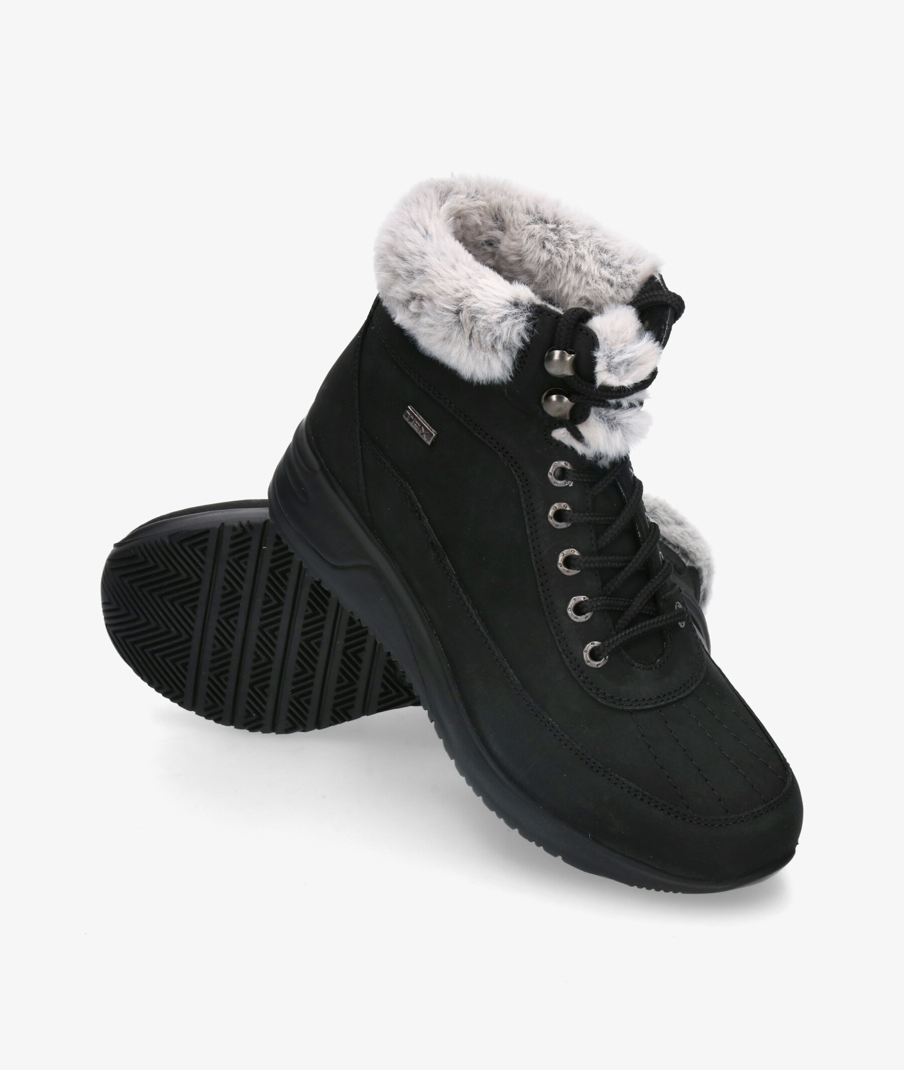 Botines St. Gallen GERTRU-01 en negro. Cuña 4,5cm. Cierre con cordones. La plantilla es extraible. Hecho en India