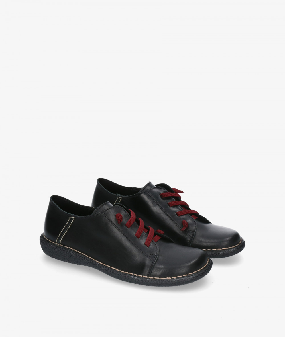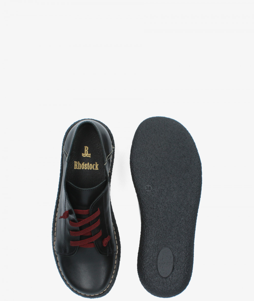 Zapatos planos Rhostock 4008 en negro. Cierre con cordones. La plantilla no es extraible. Hecho en España.