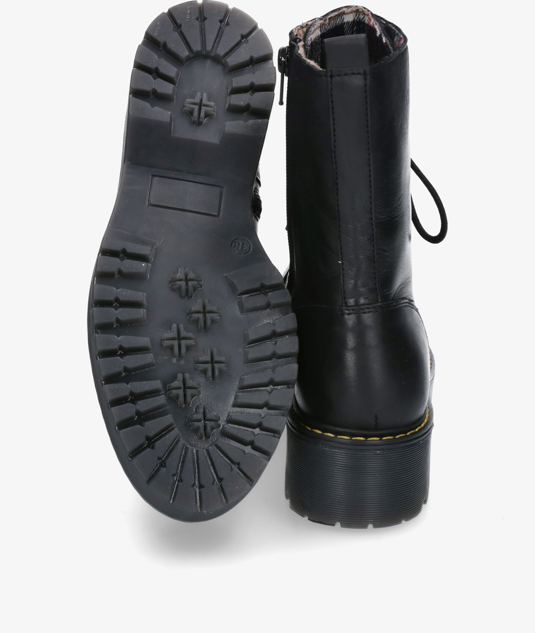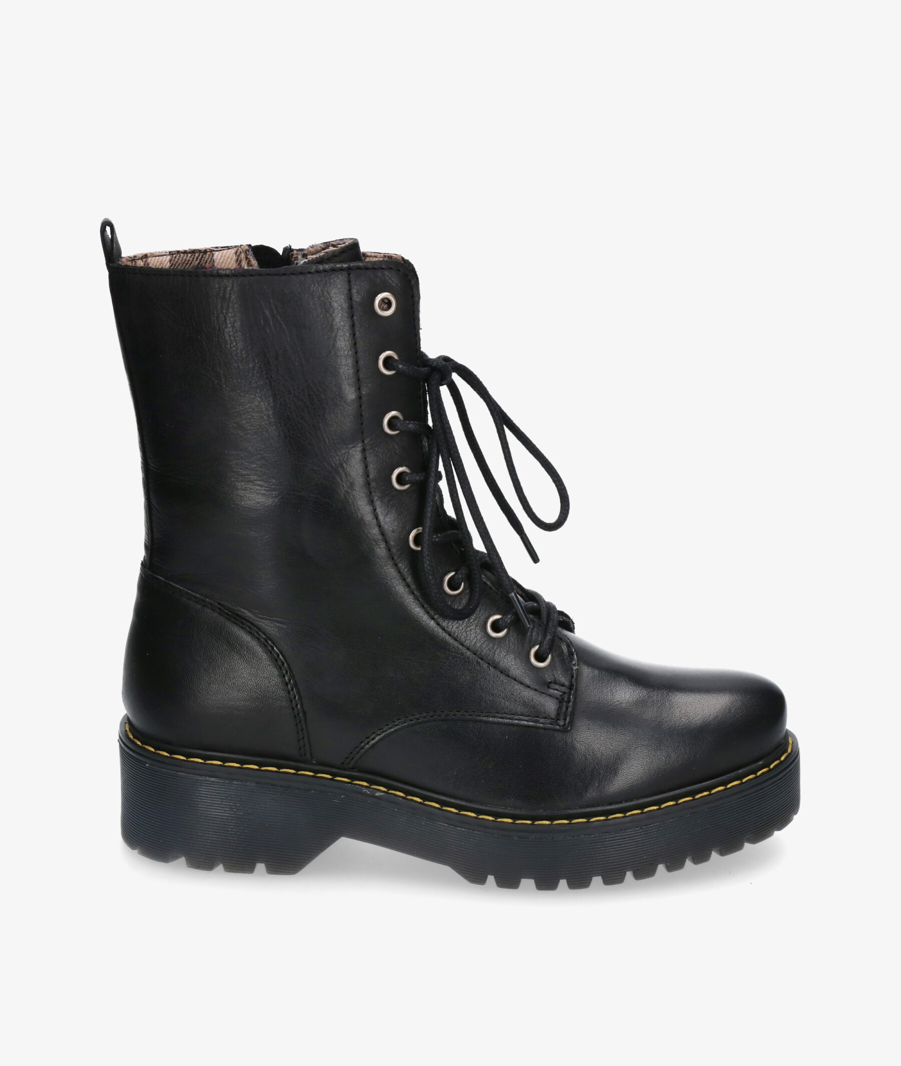 Botines Traveris B2139A en negro. Tacón 4cm, plataforma 2,5cm. Cierre con cremallera y cordones. La plantilla no es extraible. Hecho en Europa.