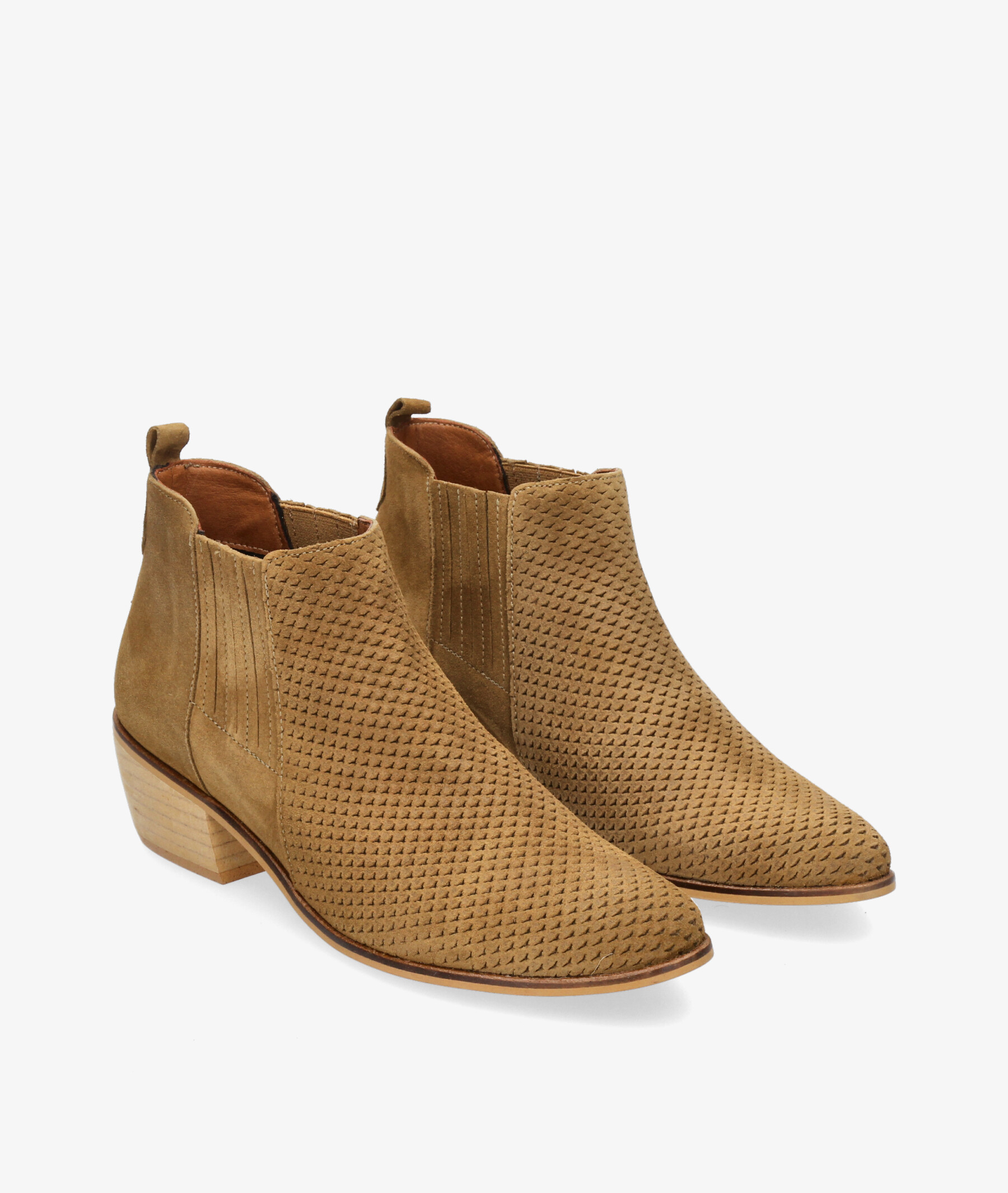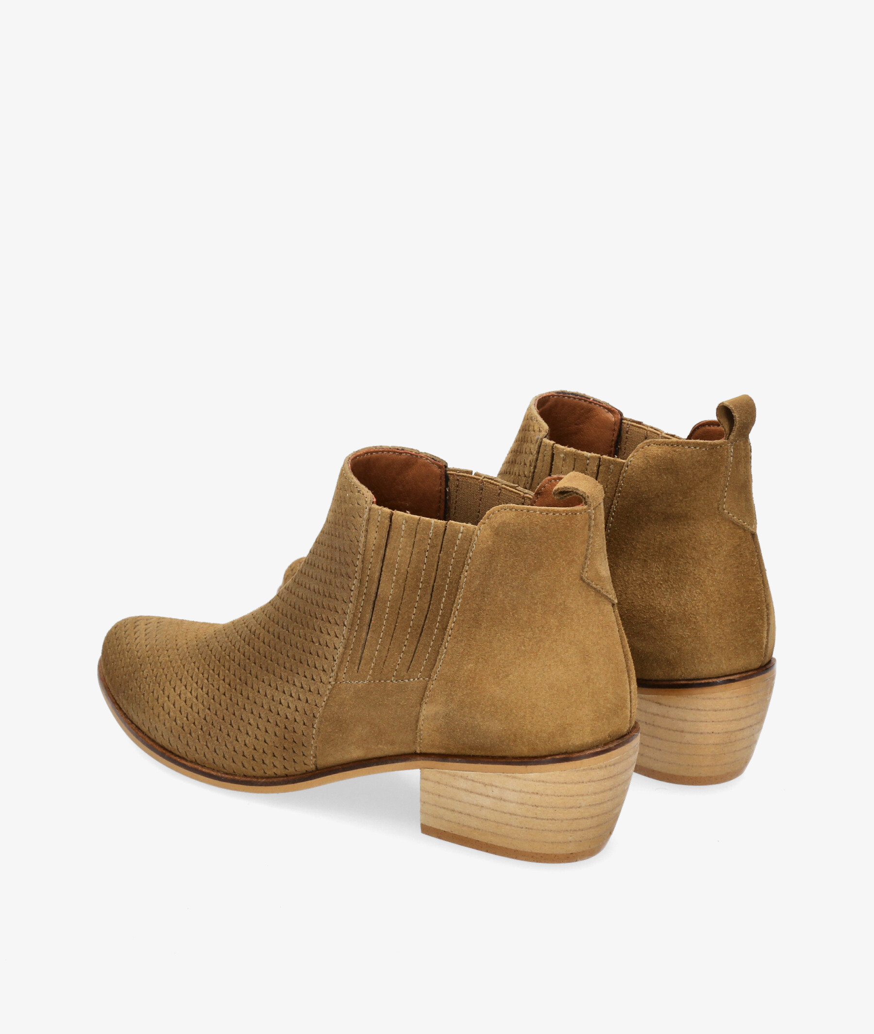 Botines bloom&you ATENEA en serraje camel. Altura tacón 4cm. Cierre con elásticos . La plantilla no es extraible. Hecho en España.
