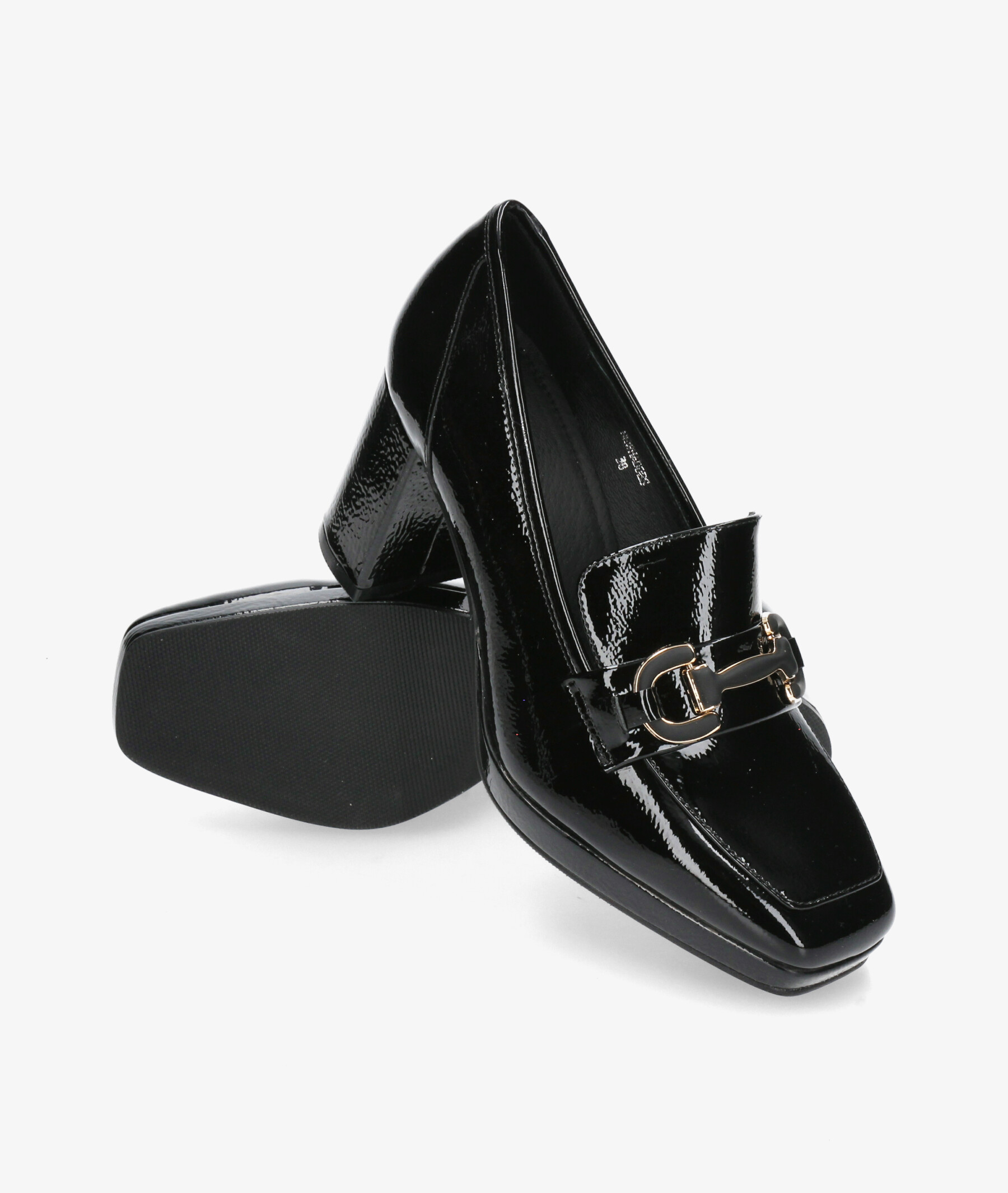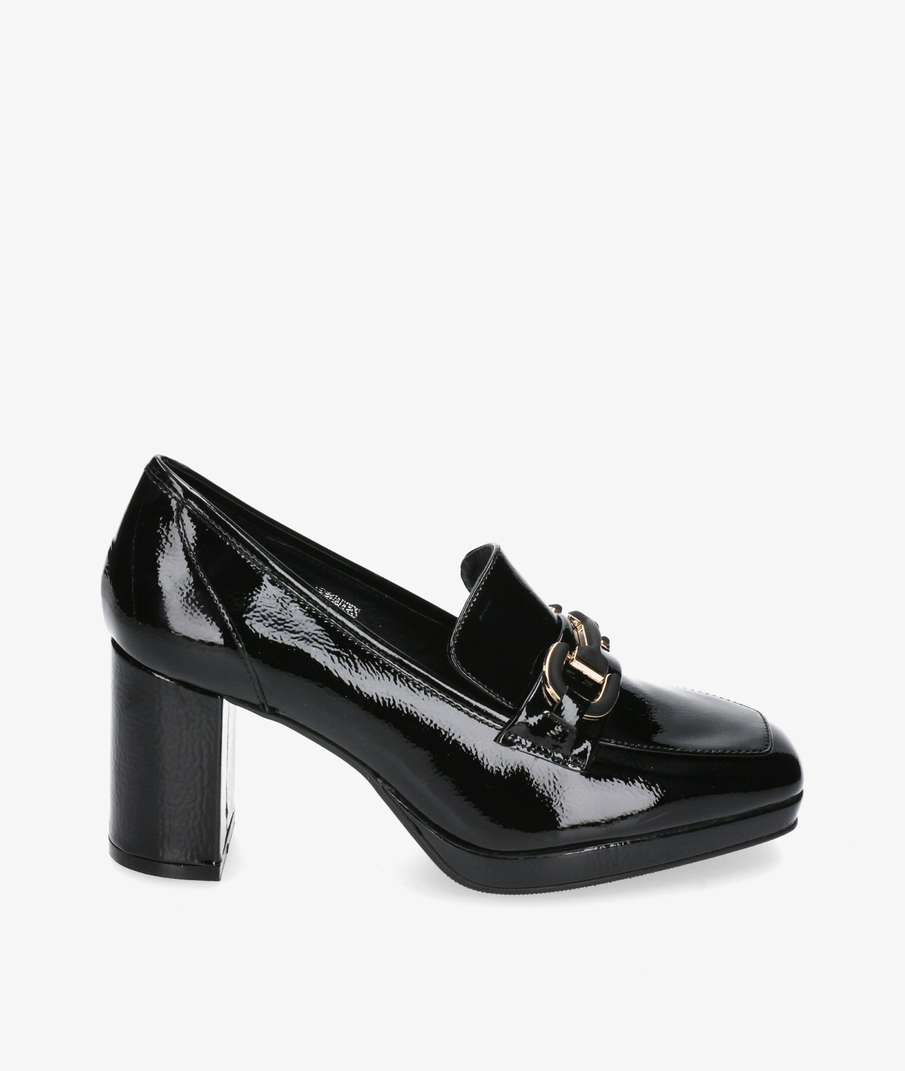 vestir con plataforma Stephen Allen NEWHADDES 70-2437-C10 en charol negro. Tacón 7,5cm, plataforma 1,5cm. Sin cierre, slip on. La plantilla no es extraible. Hecho en China