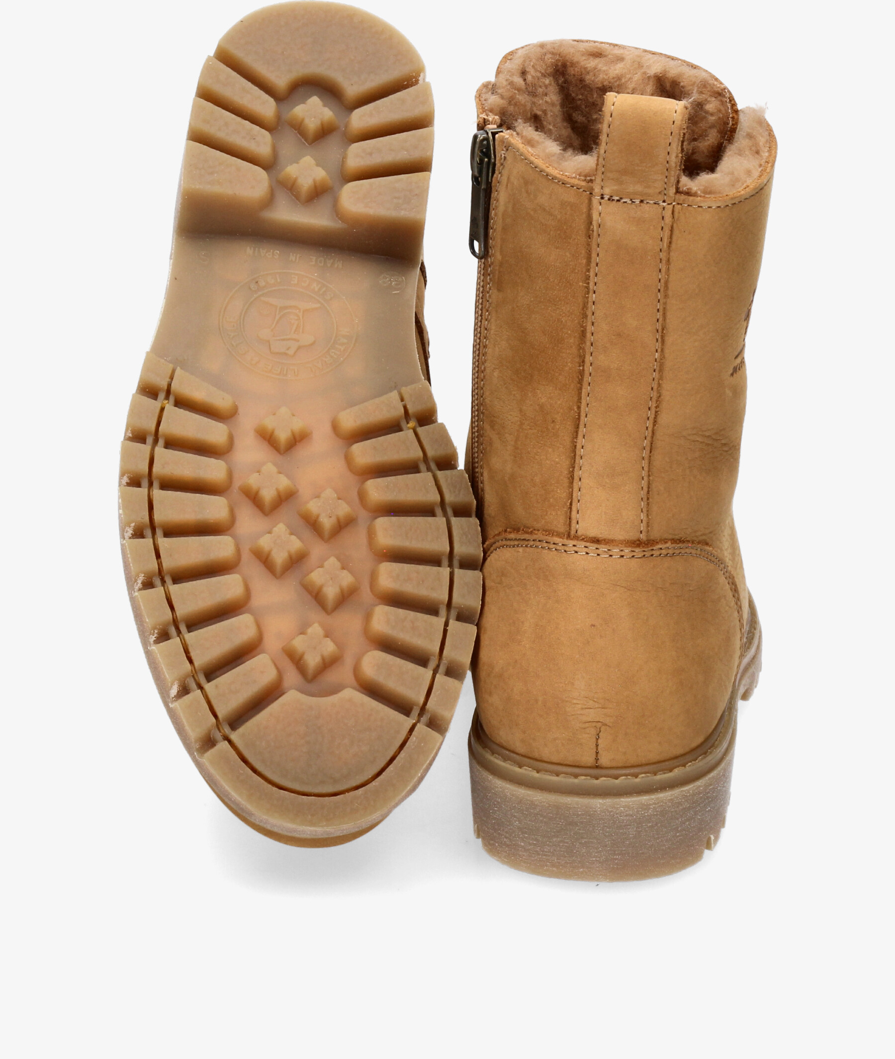 Botines Panamá Jack FRISIA B7 en nobuck camello. Cierre con cremallera y cordones. La plantilla es extraible. Hecho en España.