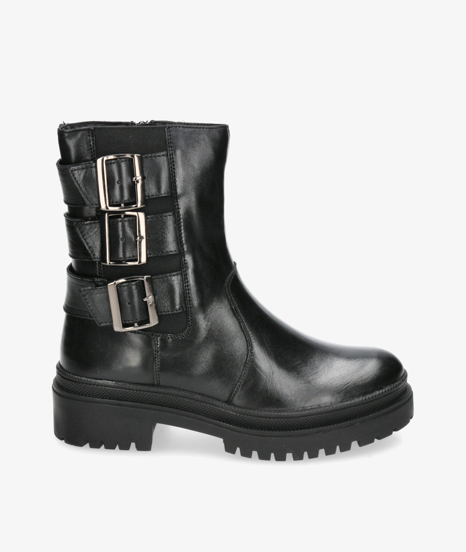 Botines St. Gallen BRONSON-03 en negro. Tacón 3,5 cm. Plataforma 2 cm. Cierre con cremallera en la parte interior. La plantilla no es extraible. Hecho en India