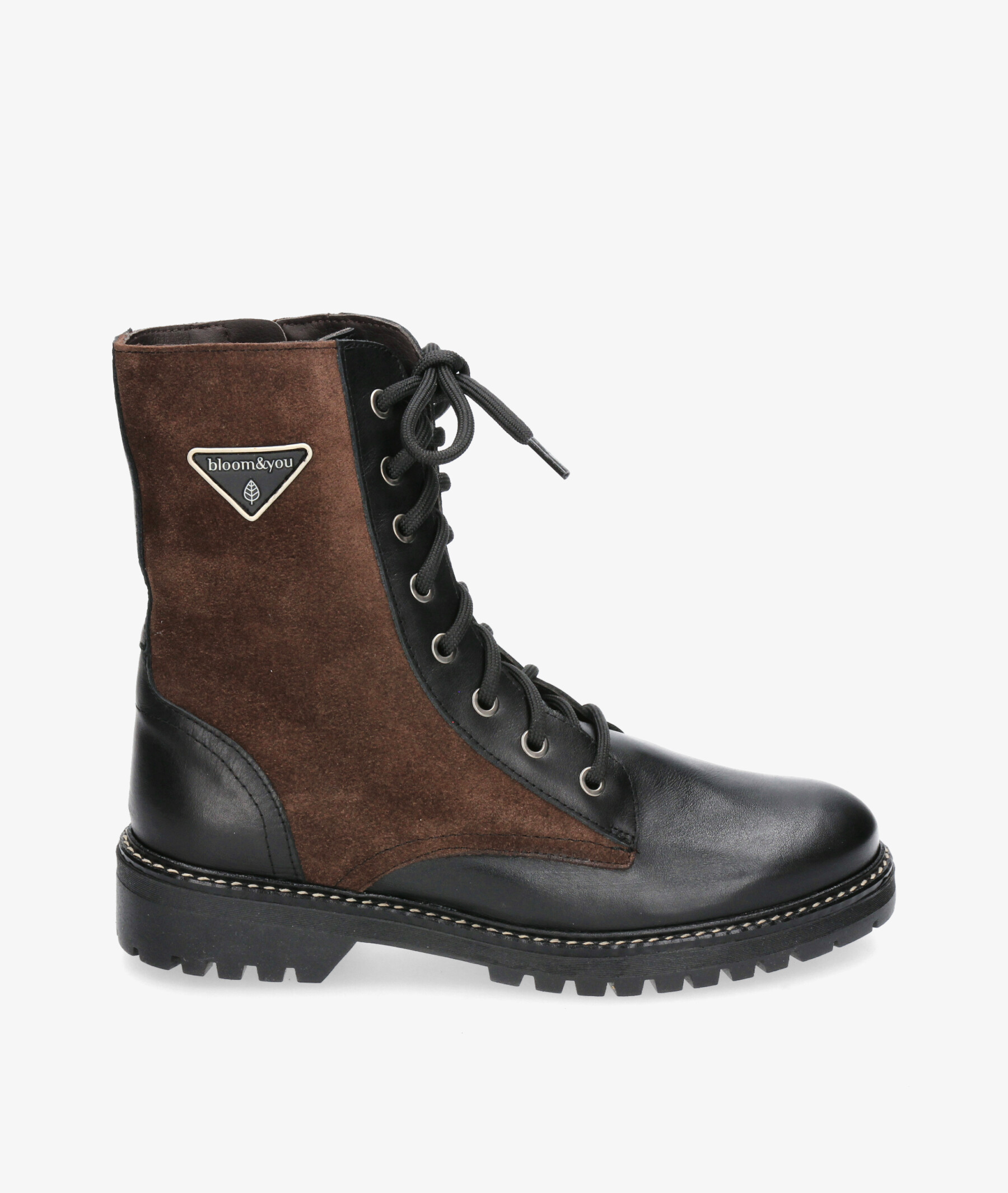 Botines bloom&you LUNA en negro. Tacón 3 cm, plataforma 1,5 cm. Cierre con cremallera y cordones. La plantilla no es extraible. Hecho en España.