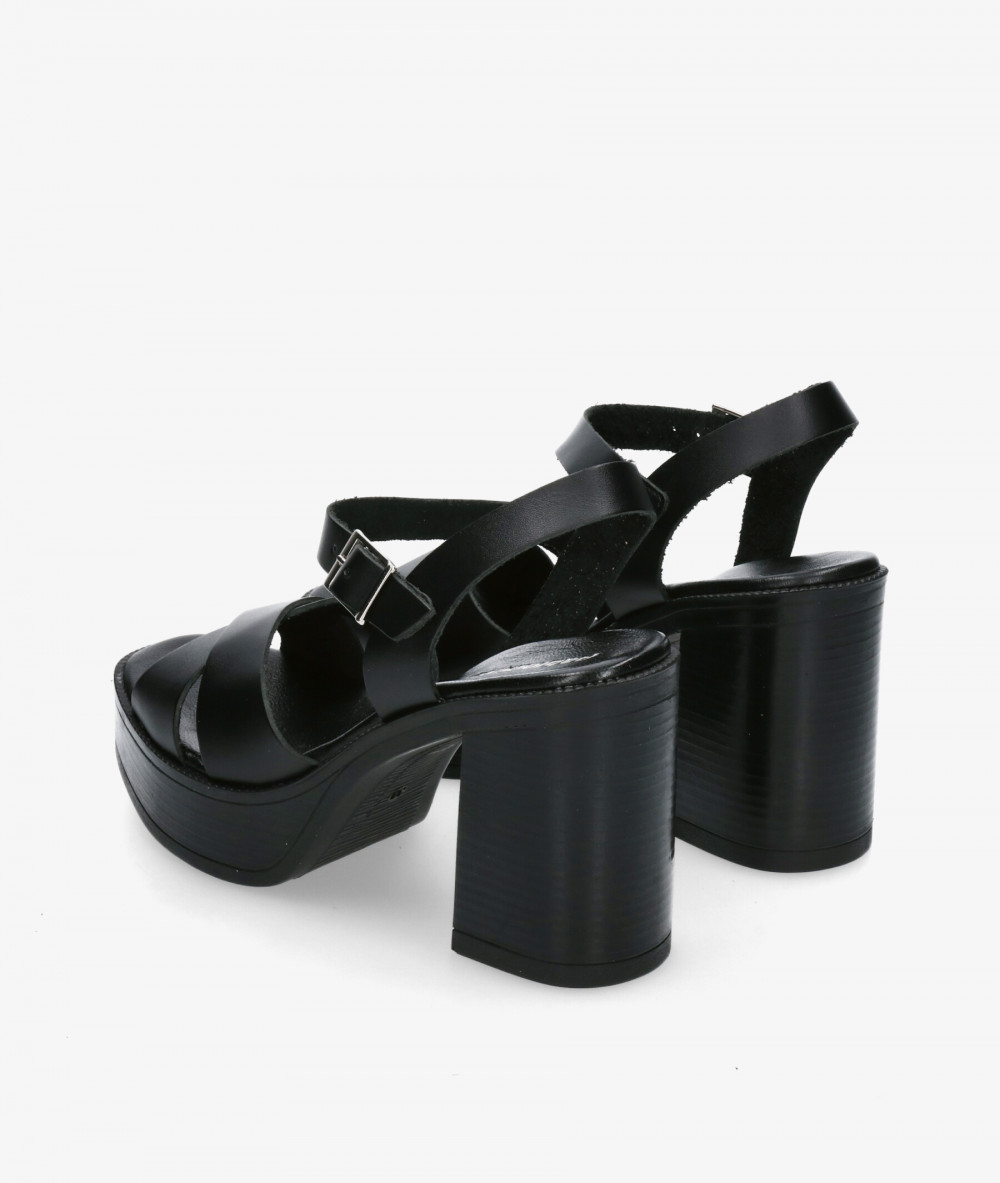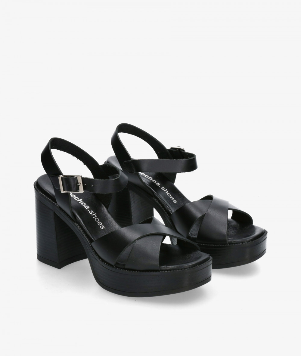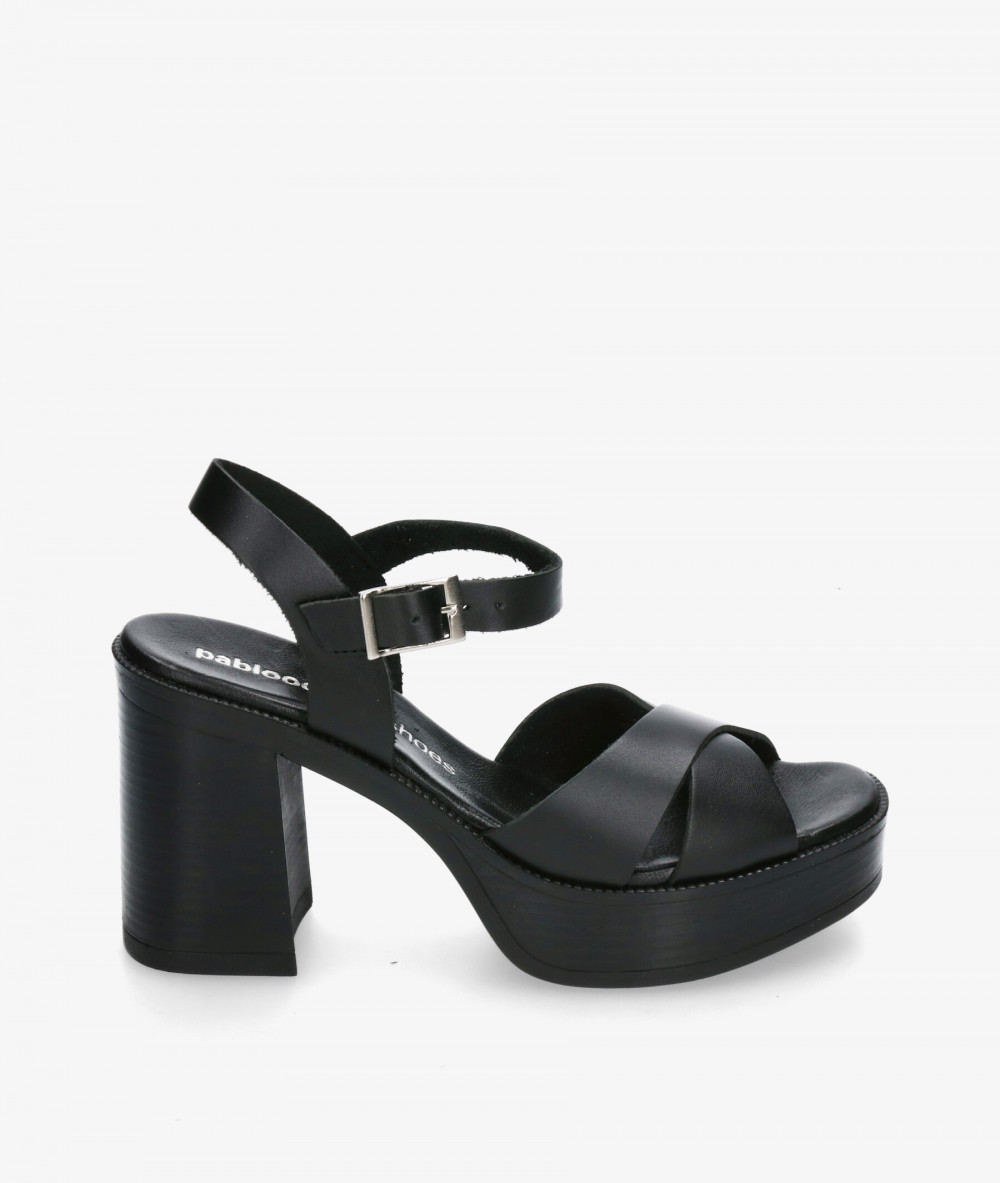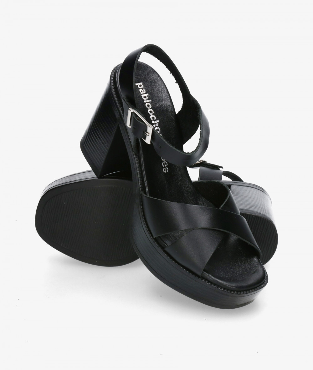 Sandalias pabloochoa.shoes 4217 en negro. Tacón 9cm, plataforma 3cm. Cierre con hebilla en un lateral. La plantilla no es extraible. Hecho en España.