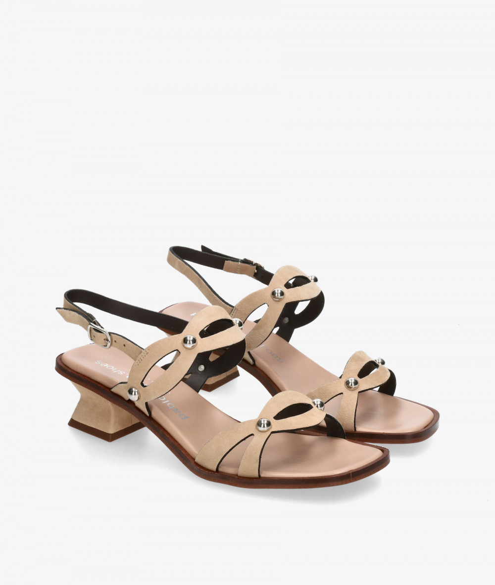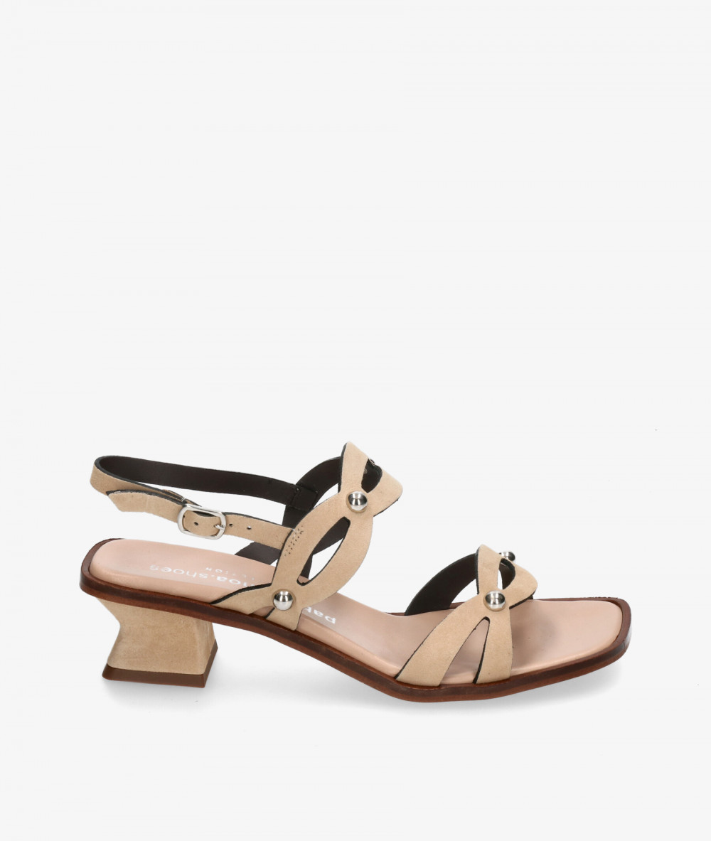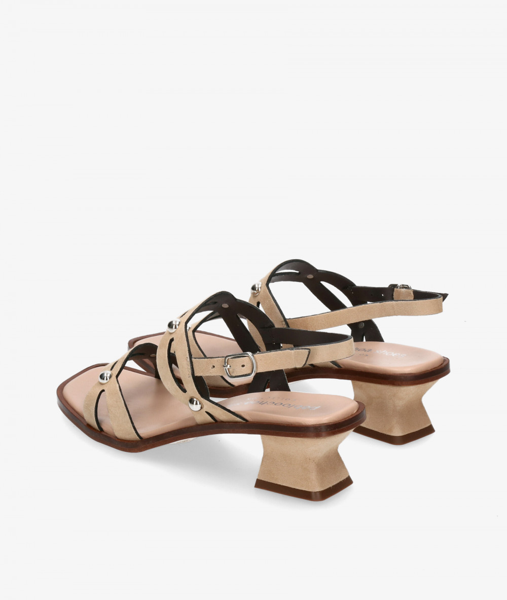 Sandalias pabloochoa.shoes 3982 en ante taupe. Altura tacón 4cm. Cierre con hebilla en un lateral. La plantilla no es extraible. Hecho en España.
