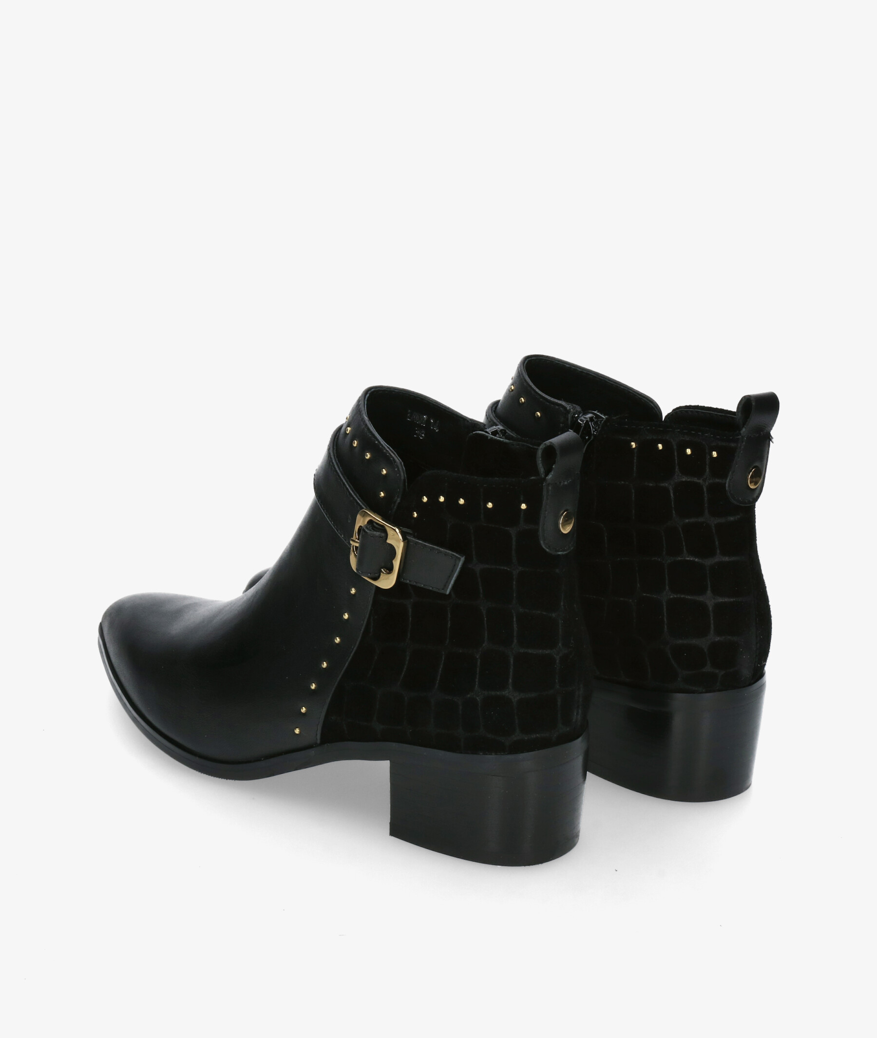 Botines Stephen Allen LAUR-14 38330-C3 en coco negro. Altura tacón 4cm. Cierre con cremallera en la parte interior. La plantilla no es extraible. Hecho en China