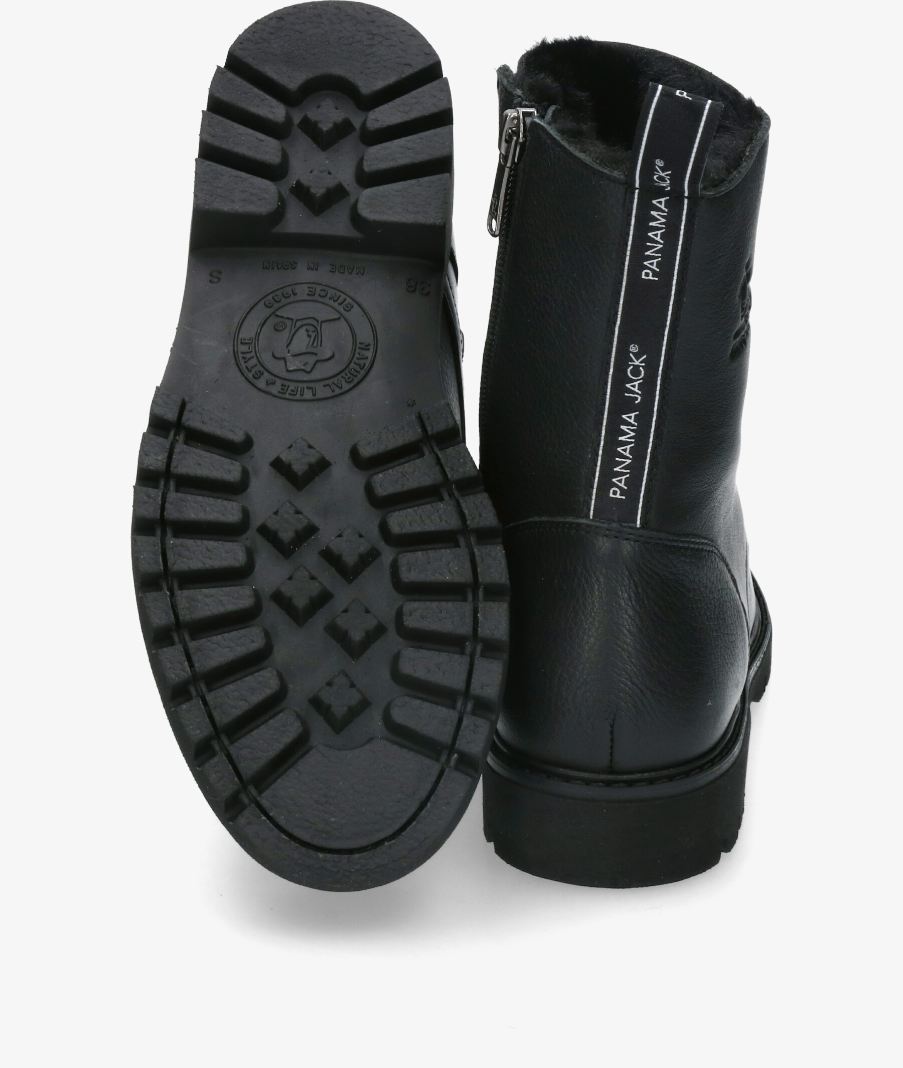 Botines Panamá Jack FRISIA B1 en negro. Cierre con cremallera y cordones. La plantilla es extraible. Hecho en España.