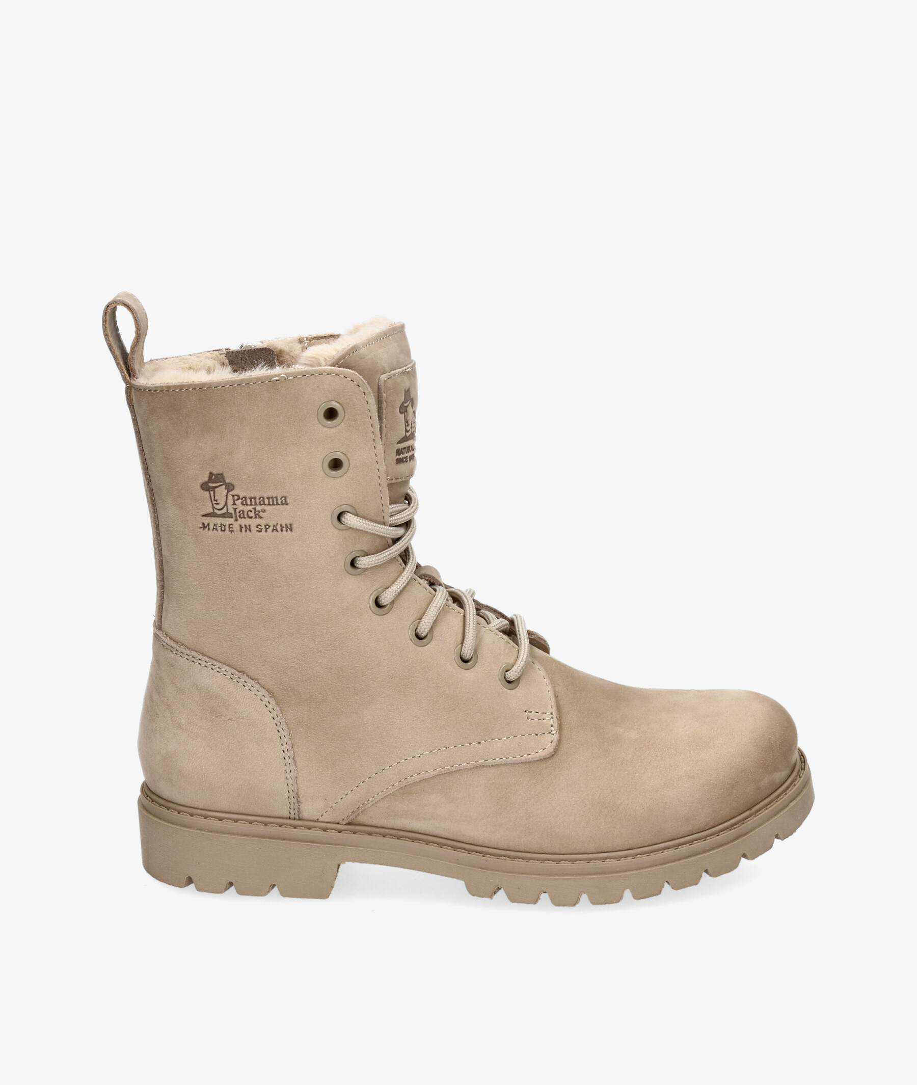 Botines Panamá Jack FRISIA B8 en nobuck piedra. Cierre con cremallera y cordones. La plantilla es extraible. Hecho en España.