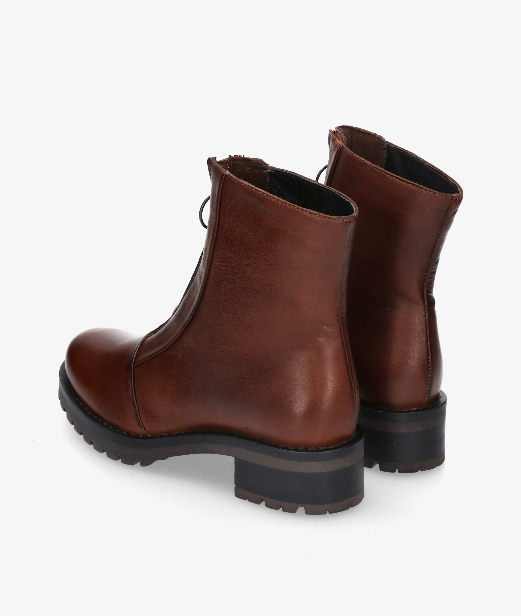 Botines Traveris B-1377 M en cuero. Altura tacón 3cm. Cierre con cremallera en la parte frontal. La plantilla no es extraible. Hecho en Portugal