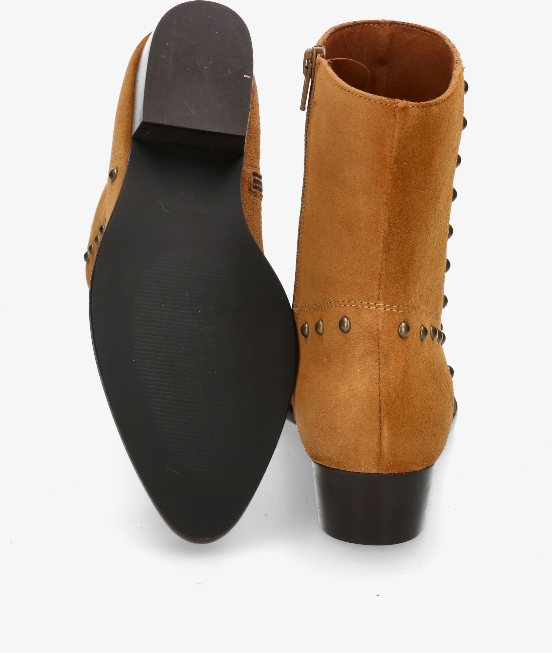 Botines bloom&you ANNIE en serraje camel. Altura tacón 3cm. Cierre con cremallera en la parte exterior. La plantilla no es extraible. Hecho en España.