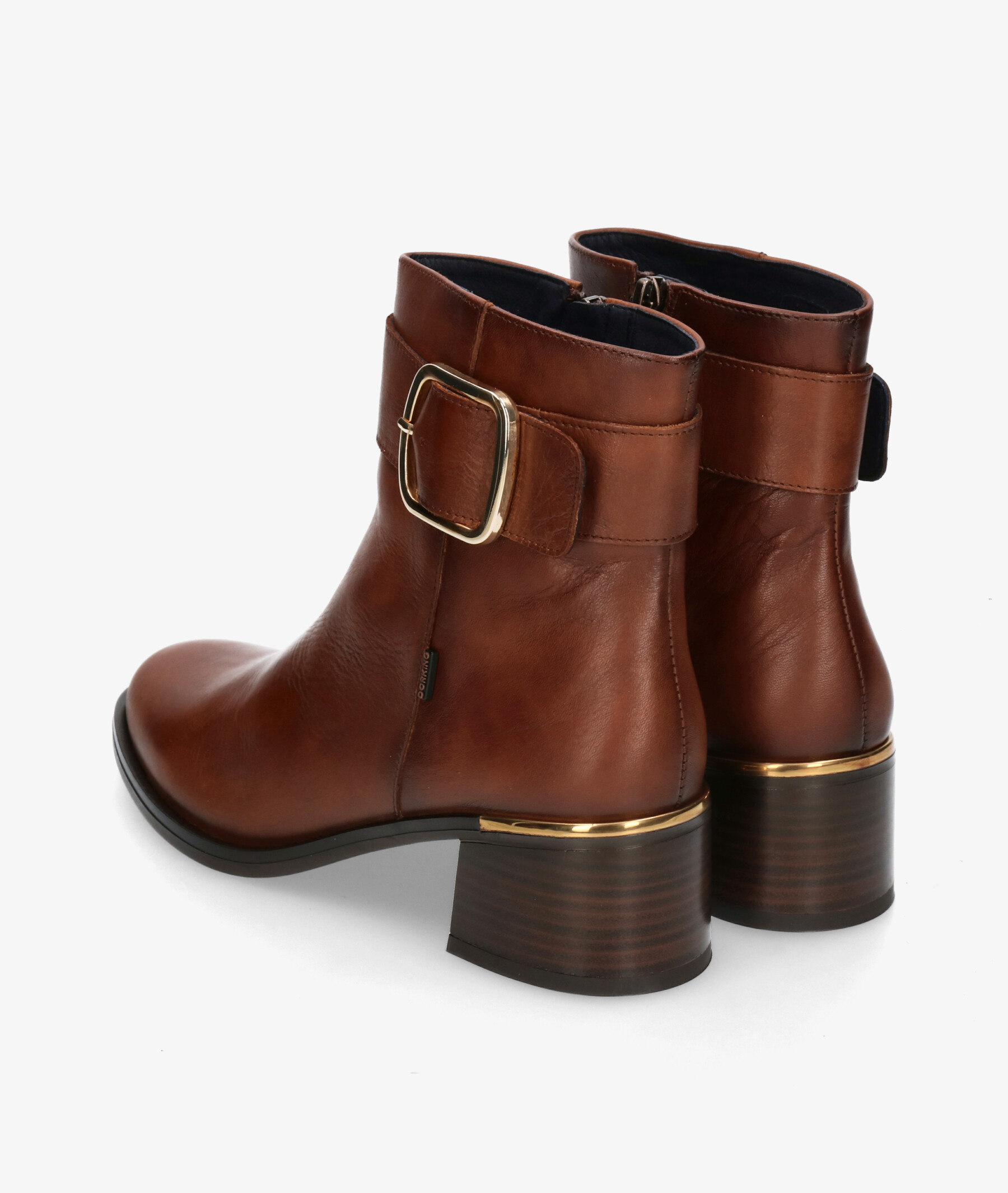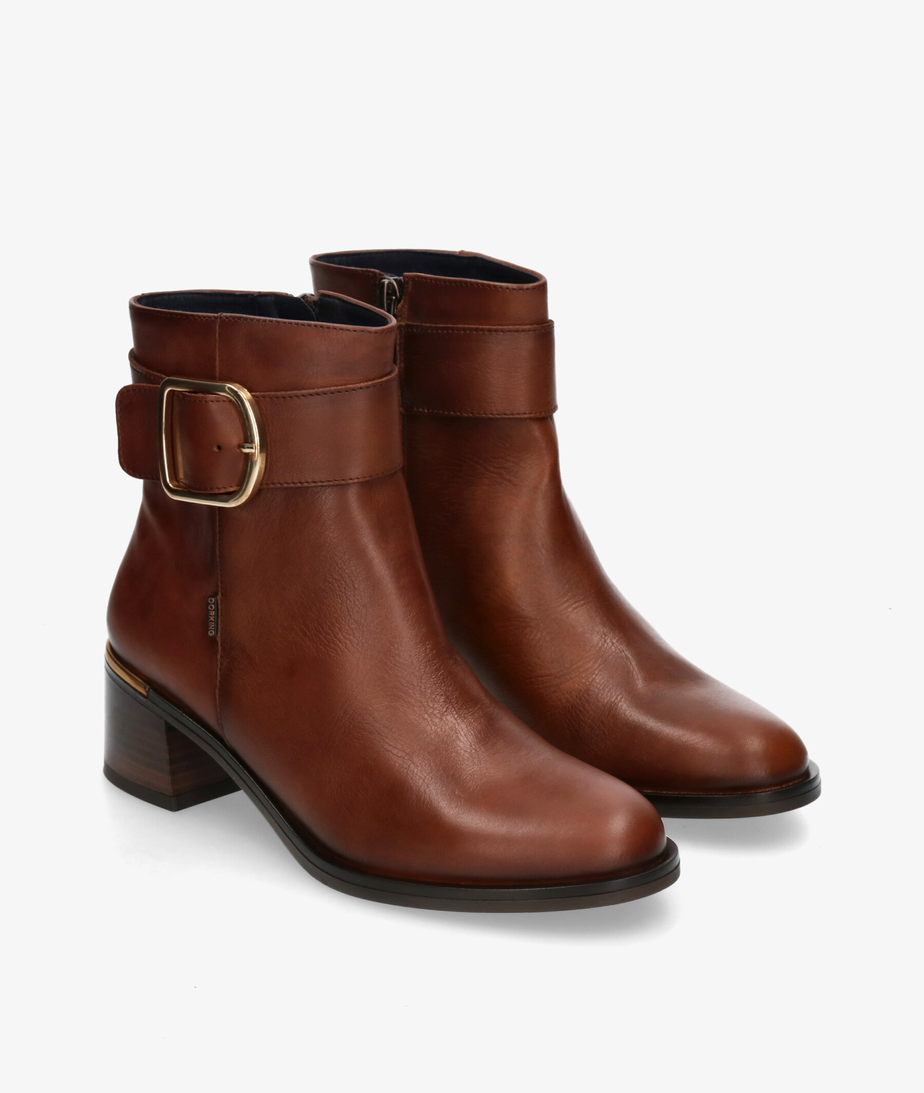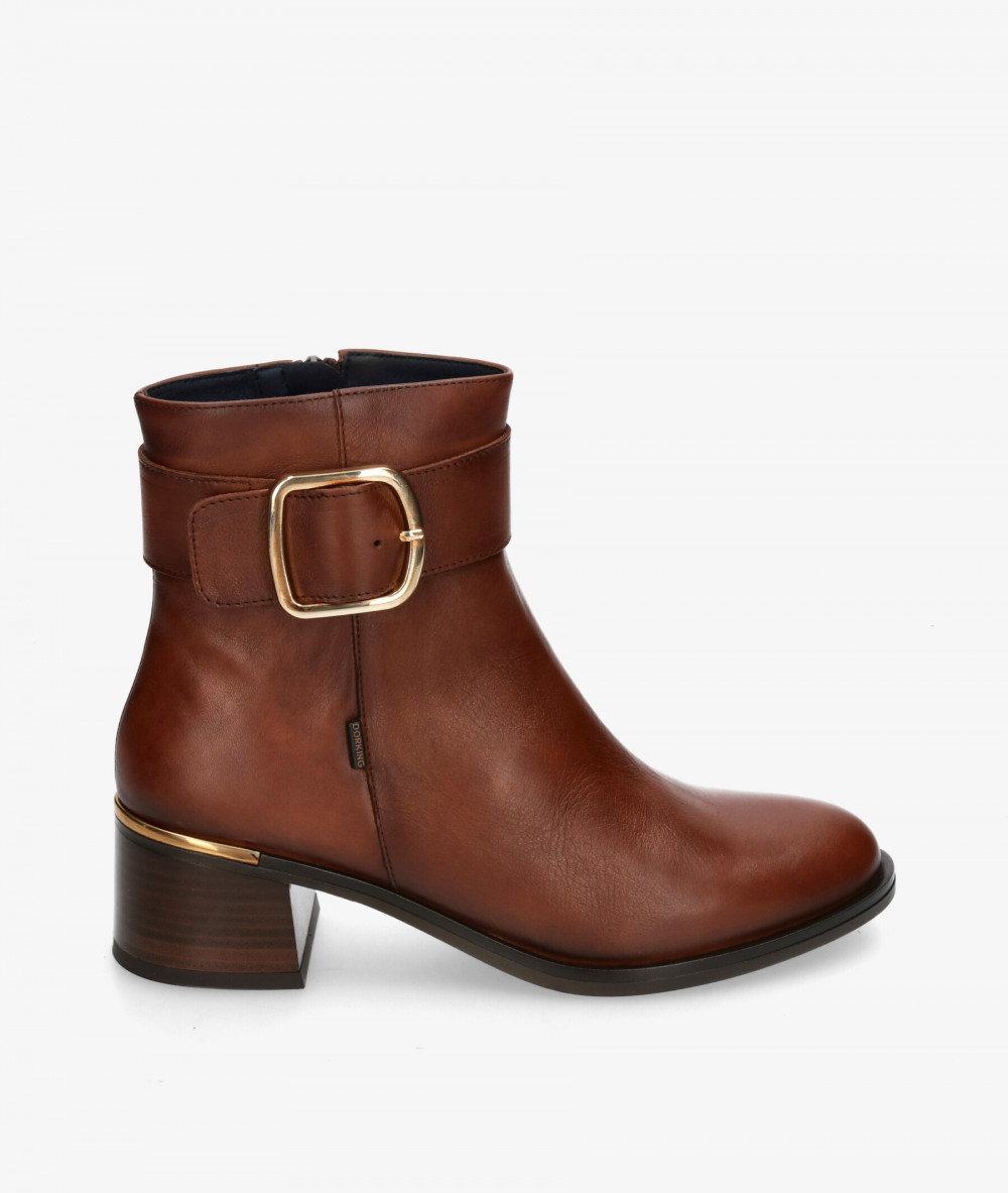 Botines Dorking 9603 en líbano. Altura tacón 4,5cm. Cierre con cremallera en la parte interior. La plantilla no es extraible. Hecho en España.