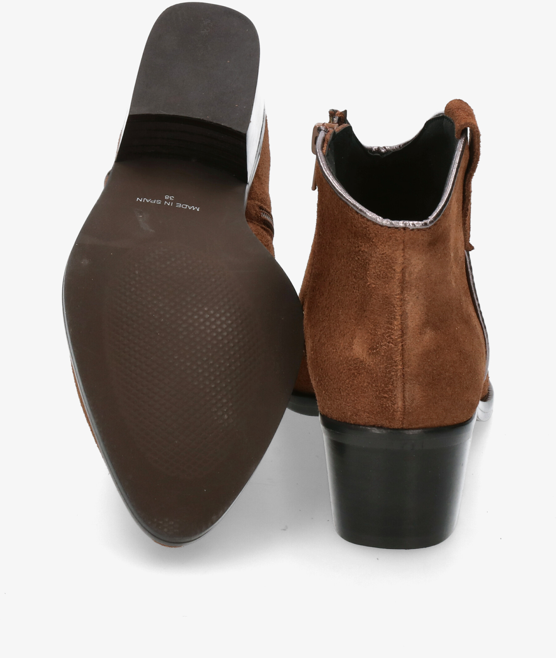 Botines bloom&you TEVA en serraje libano . Altura tacón 4cm. Cierre con cremallera en la parte interior. La plantilla no es extraible. Hecho en España.