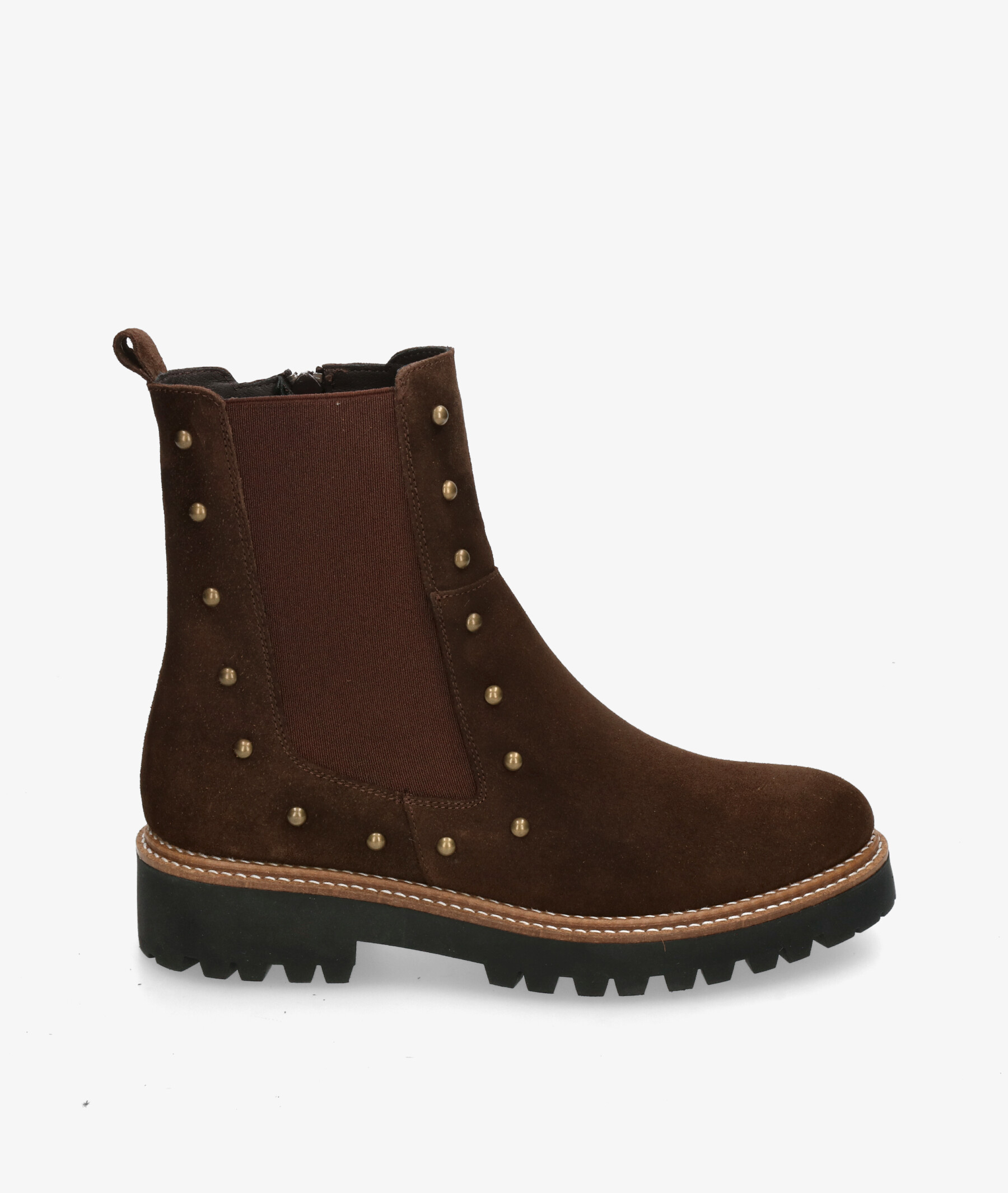 Botines bloom&you AMBER en serraje marrón. Tacón 3,5 cm. Plataforma 2 cm. Cierre con elásticos . La plantilla no es extraible. Hecho en España.