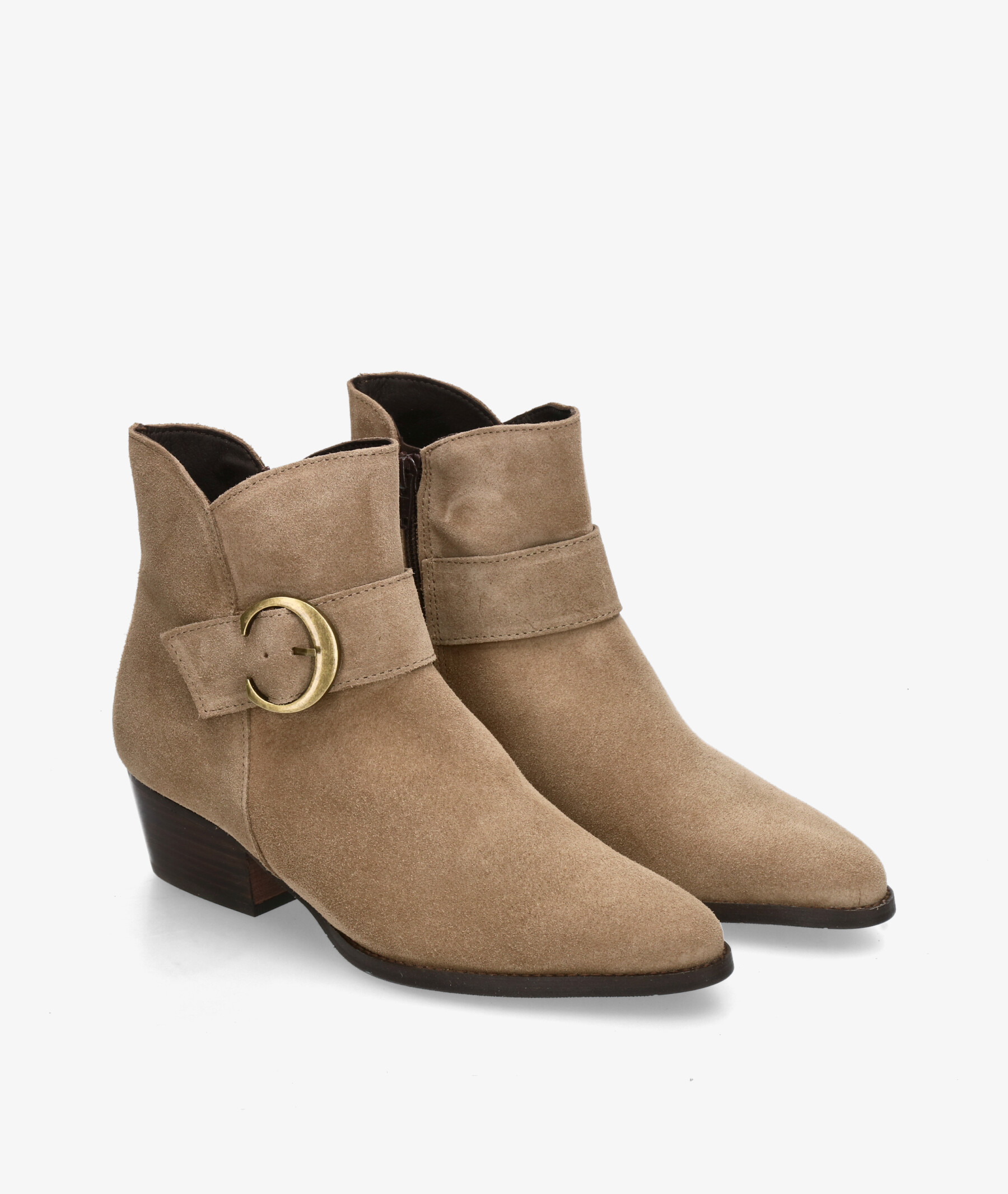 Botines bloom&you GABRIELA en serraje taupe. Altura tacón 4cm. Cierre con cremallera en la parte interior. La plantilla no es extraible. Hecho en España.