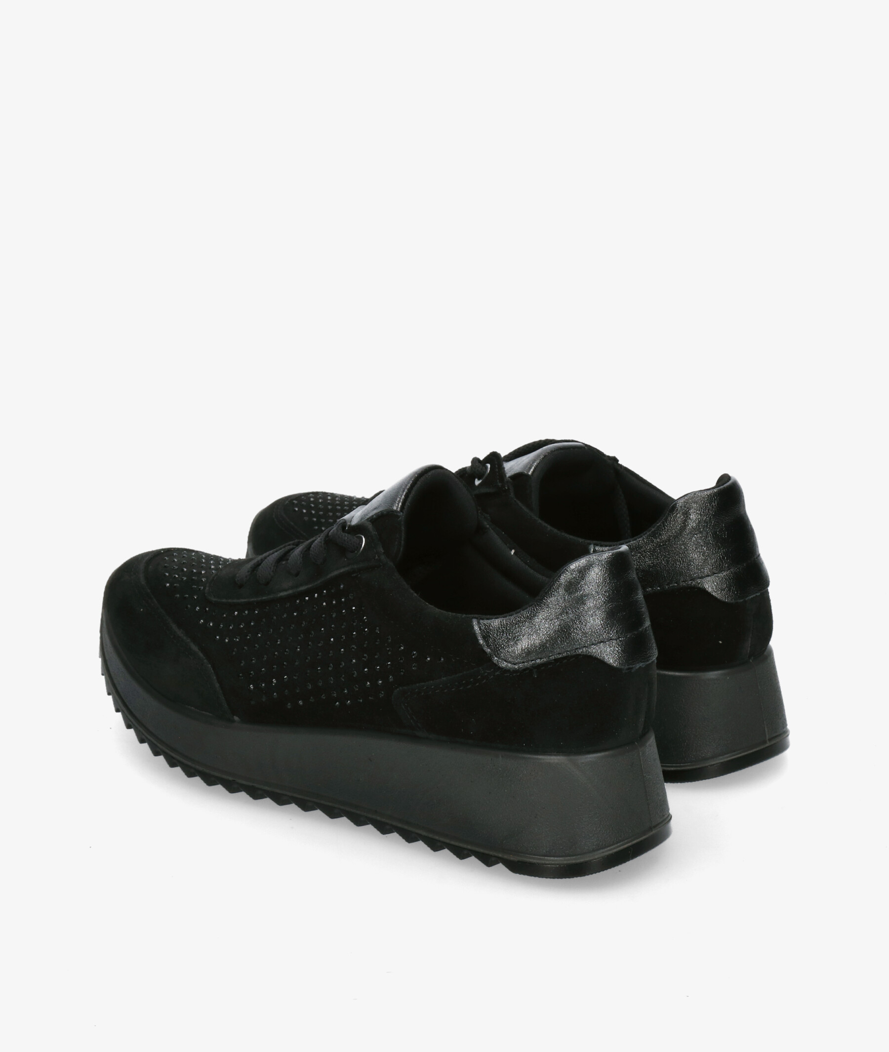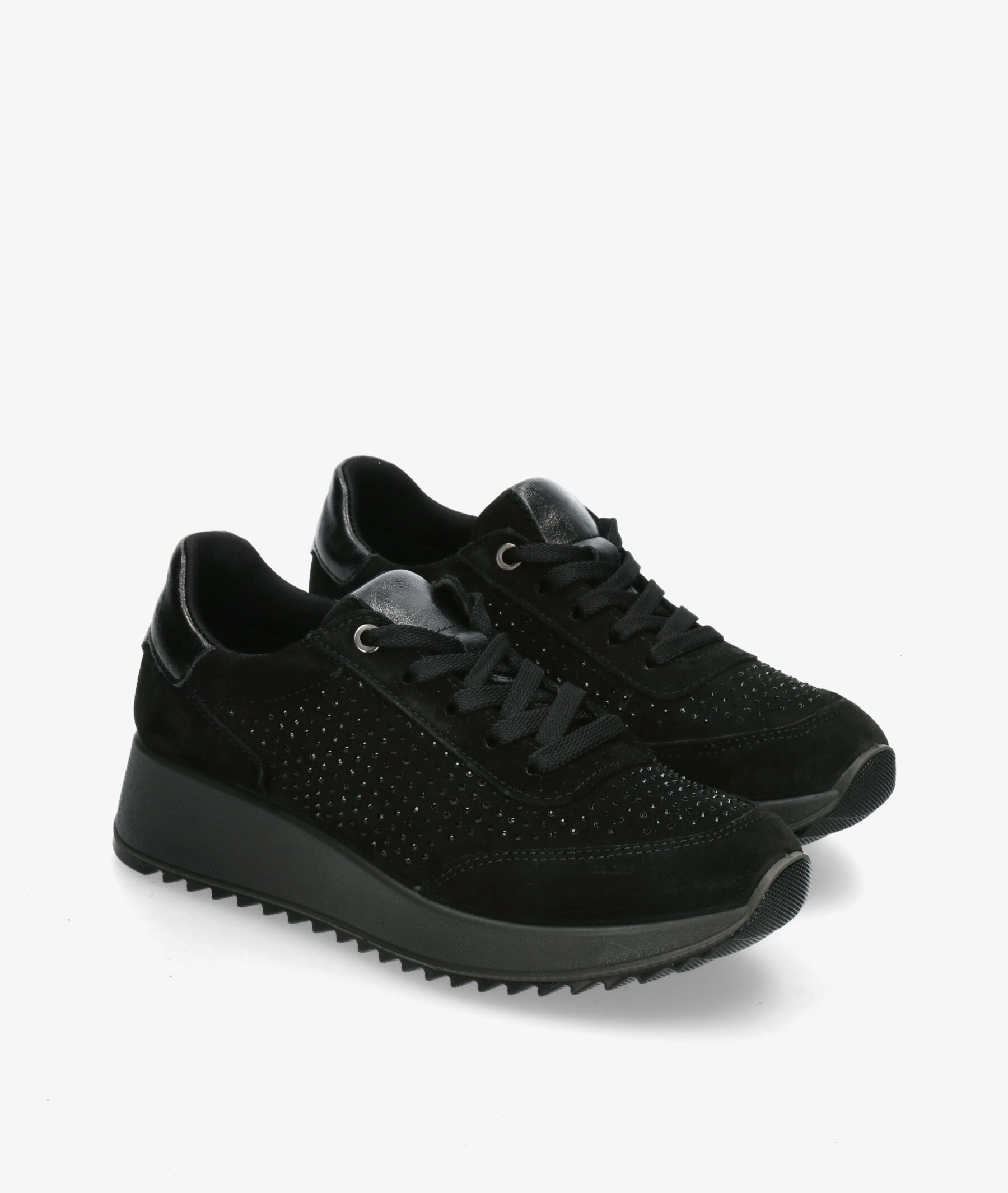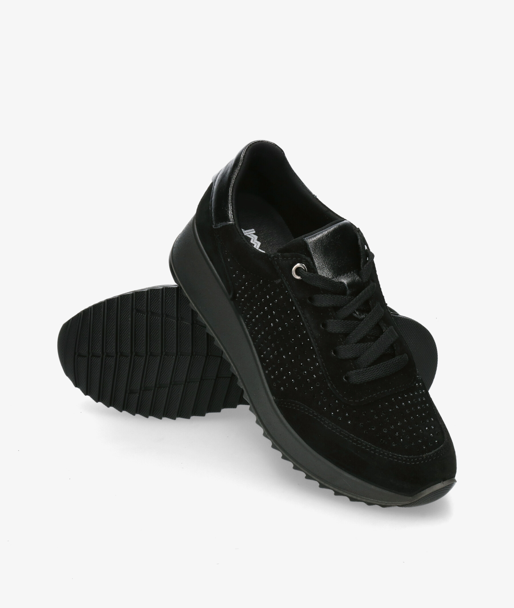 Deportivos Imac 858220 en serraje negro. Cuña 4cm, plataforma 2cm Cierre con cordones. La plantilla es extraible. Hecho en Italia.