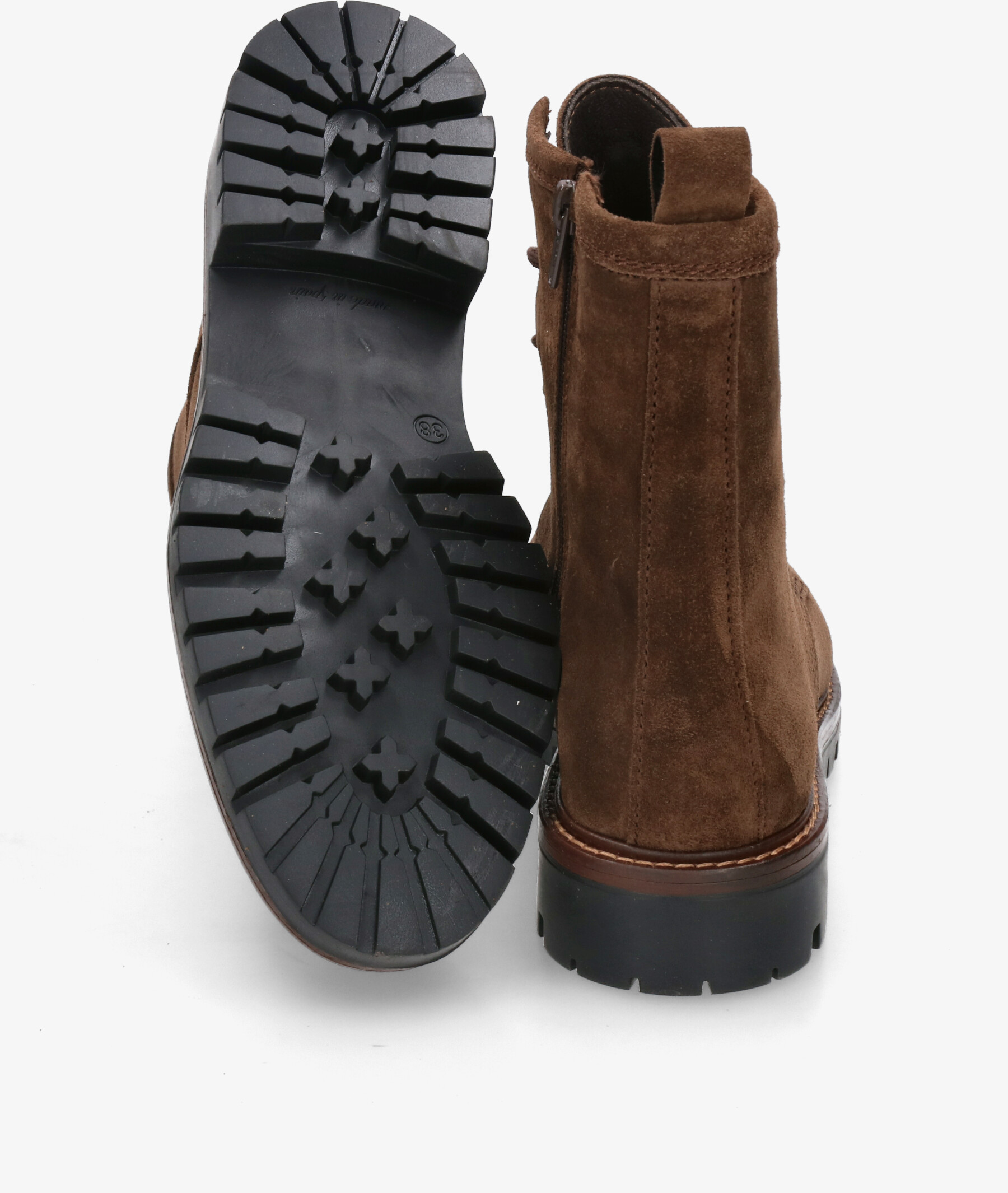 Botines Alpe 2610 en serraje marrón. Cierre con cremallera y cordones. La plantilla no es extraible. Hecho en España.