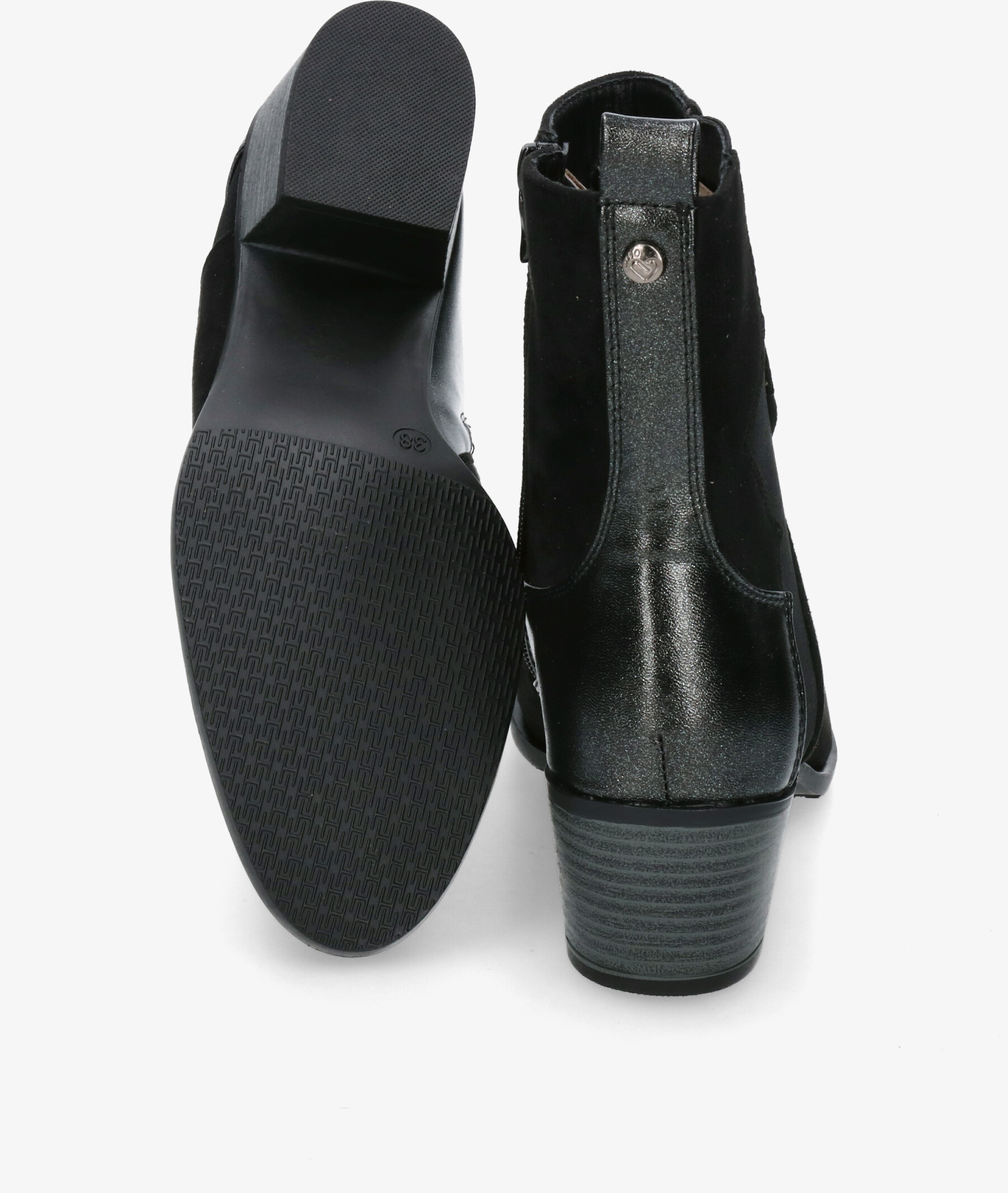 Botines Amarpies 29503 en negro. Altura tacón 4,5cm. Cierre con cremallera en la parte interior. La plantilla no es extraible. Hecho en China