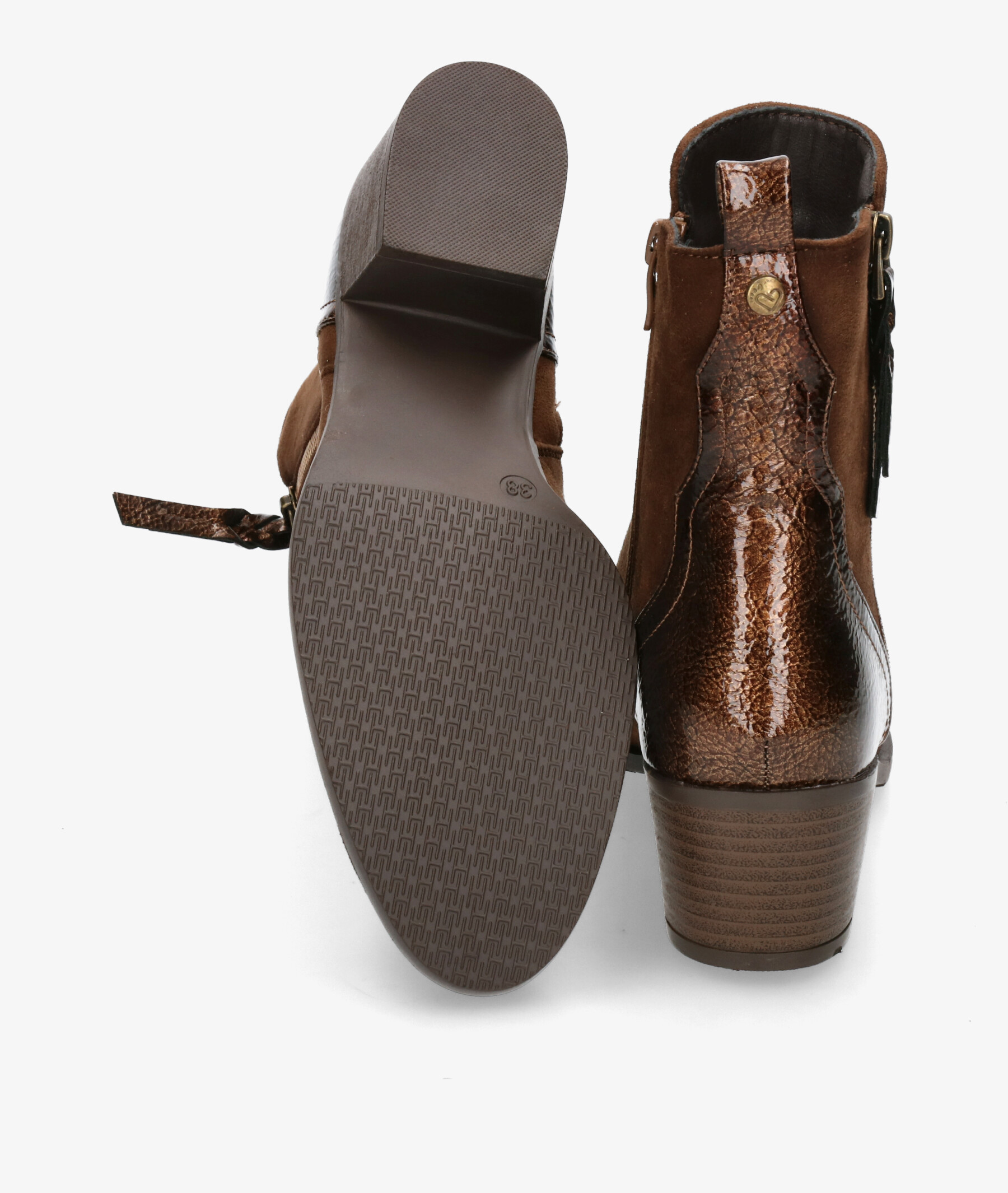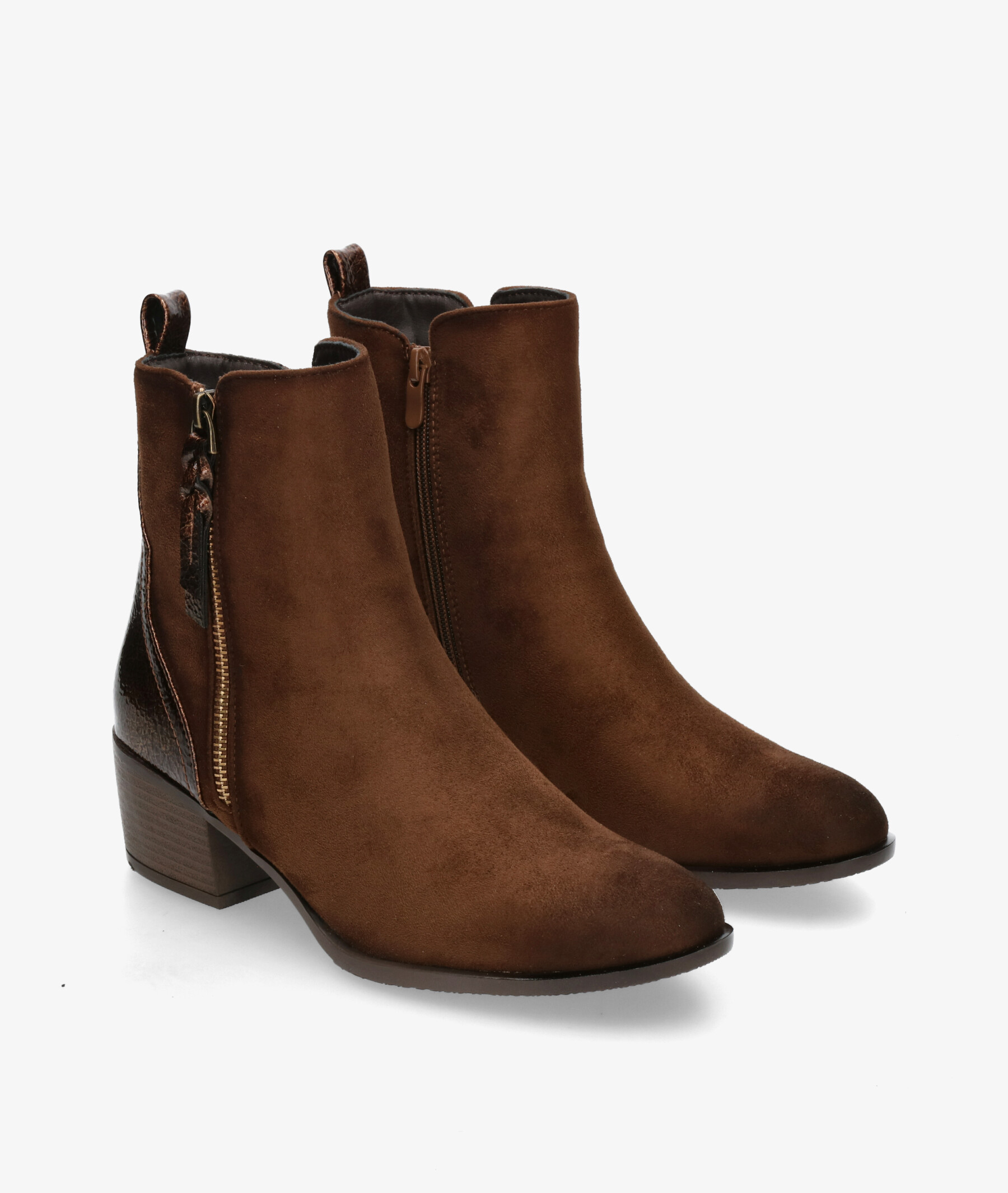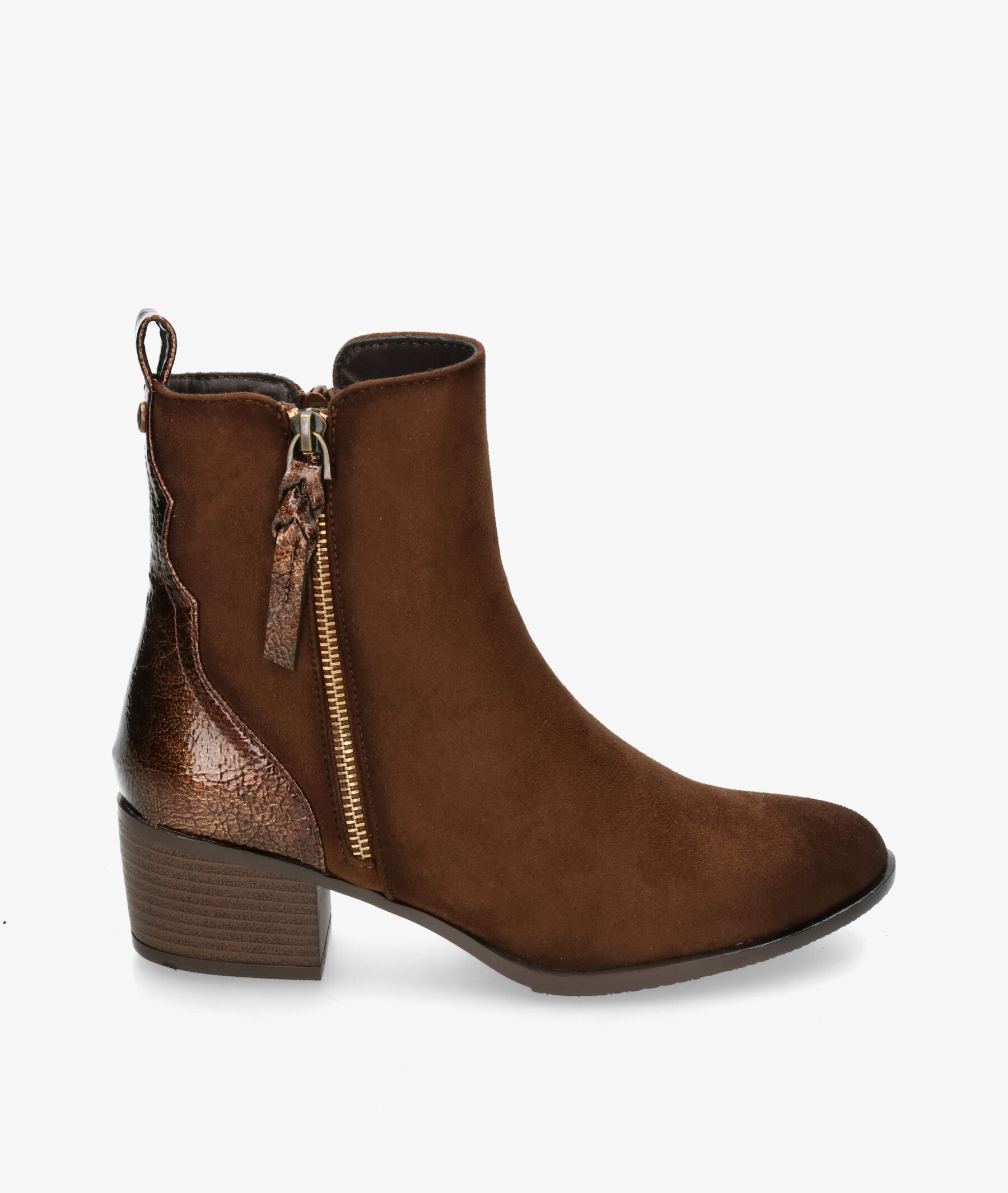 Botines Amarpies 29504 en marrón. Altura tacón 4,5cm. Cierre con cremallera en la parte interior. La plantilla no es extraible. Hecho en China