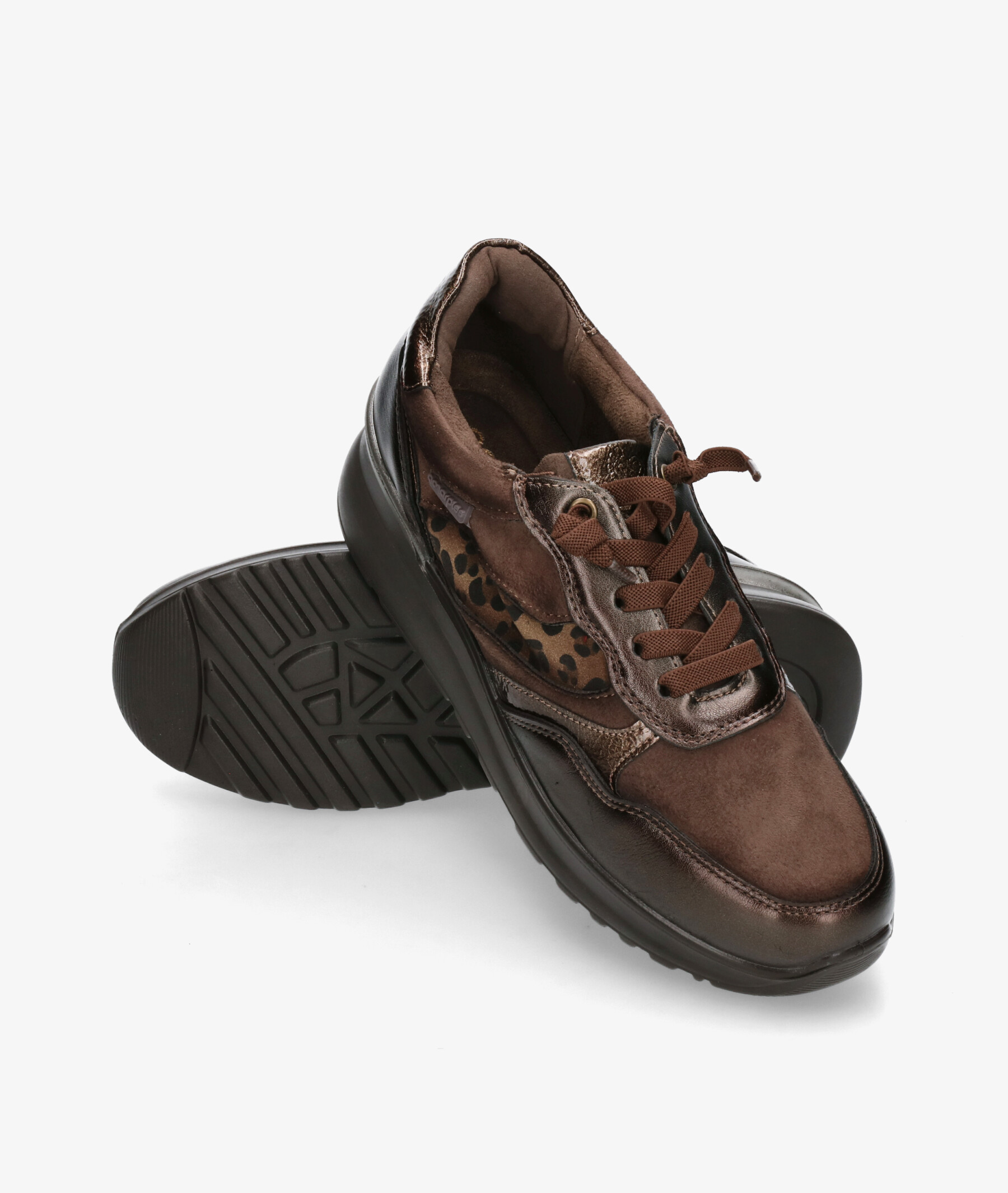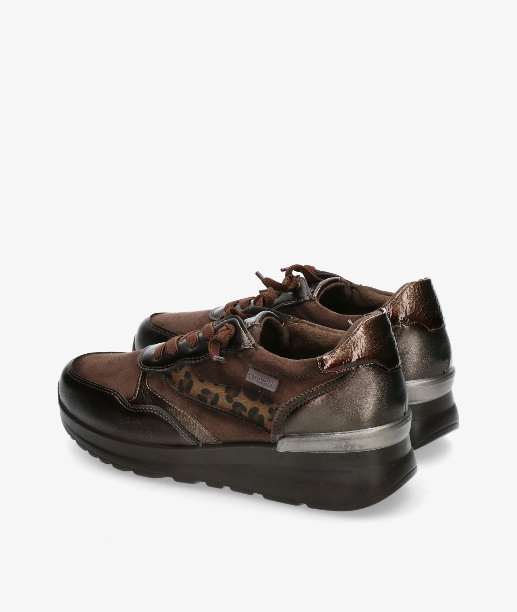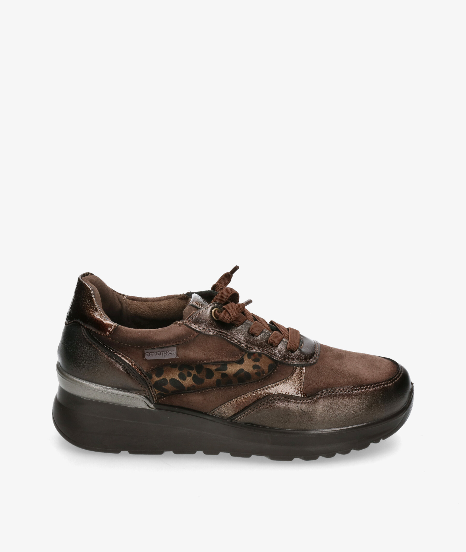 Deportivos Amarpies 29394 en marrón. Cuña 3,5cm. Cierre con cordones. La plantilla es extraible. Hecho en China