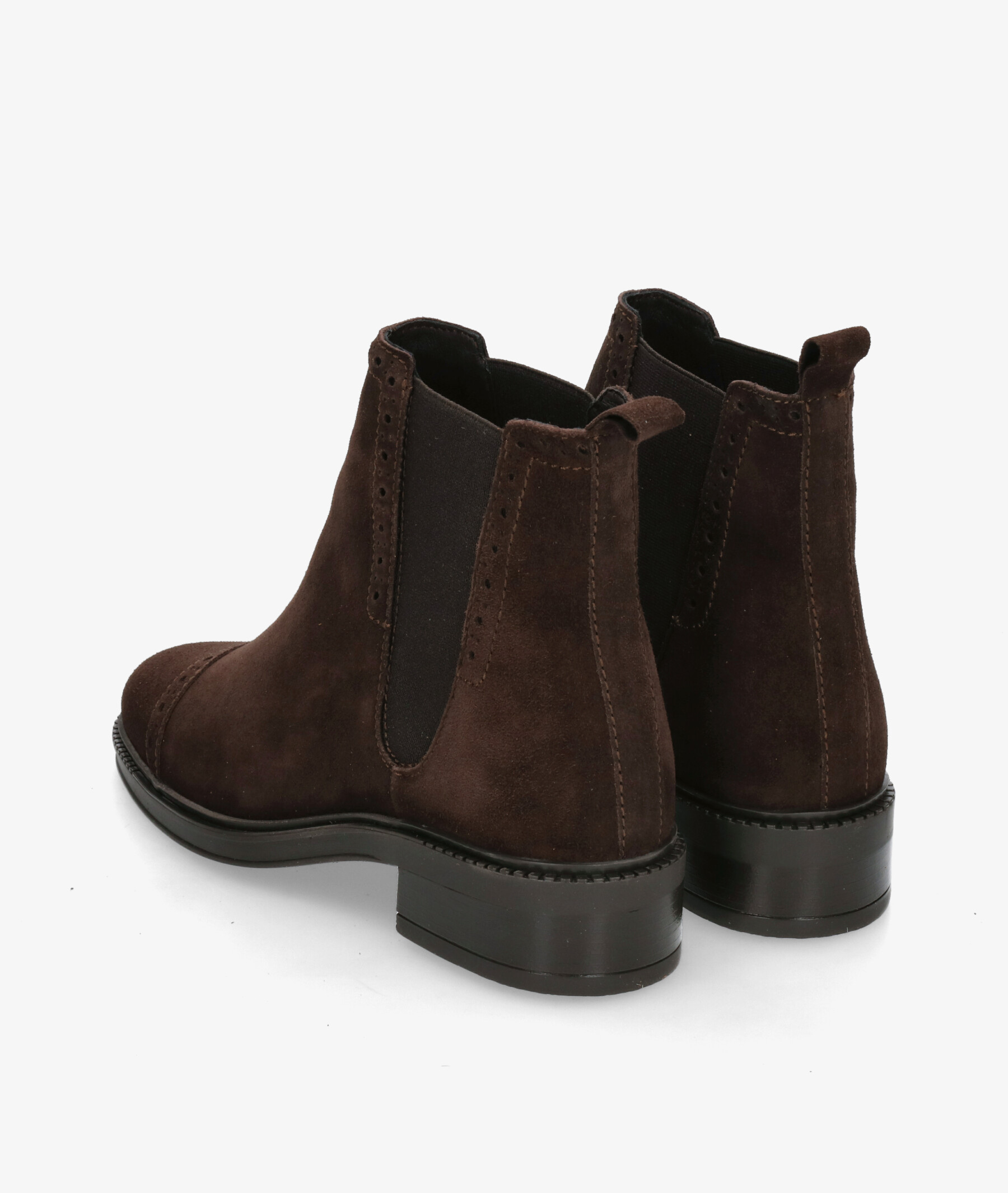 Botines LOL BERA 7236 en serraje marrón. Altura tacón 3cm. Cierre con elásticos . La plantilla no es extraible. Hecho en Portugal