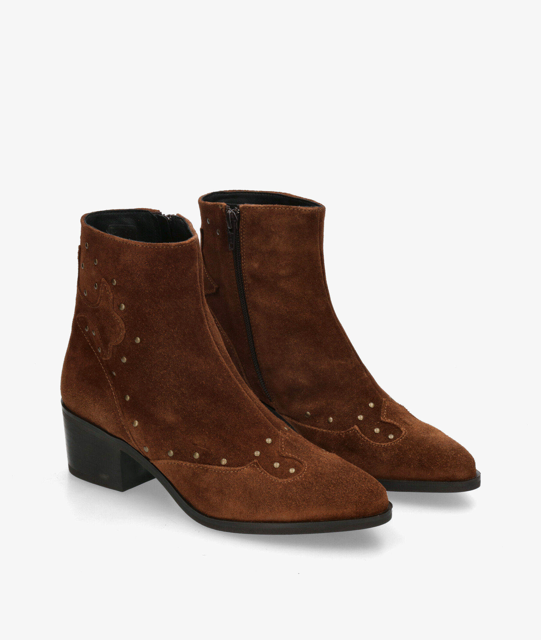 Botines pabloochoa.shoes 39515 en serraje cuero. Altura tacón 4,5cm. Cierre con cremallera en la parte interior. La plantilla no es extraible. Hecho en España.
