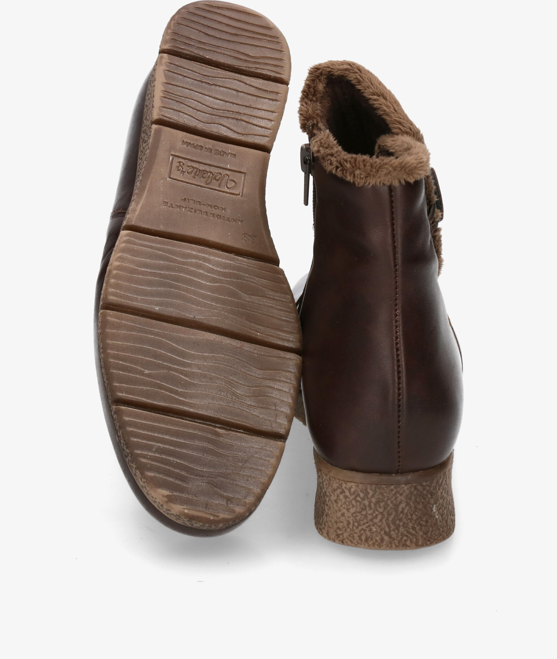 Botines Valeria´s 9520 en marrón. Cuña 3cm. Cierre con cremallera en la parte interior. La plantilla es extraible. Hecho en España.