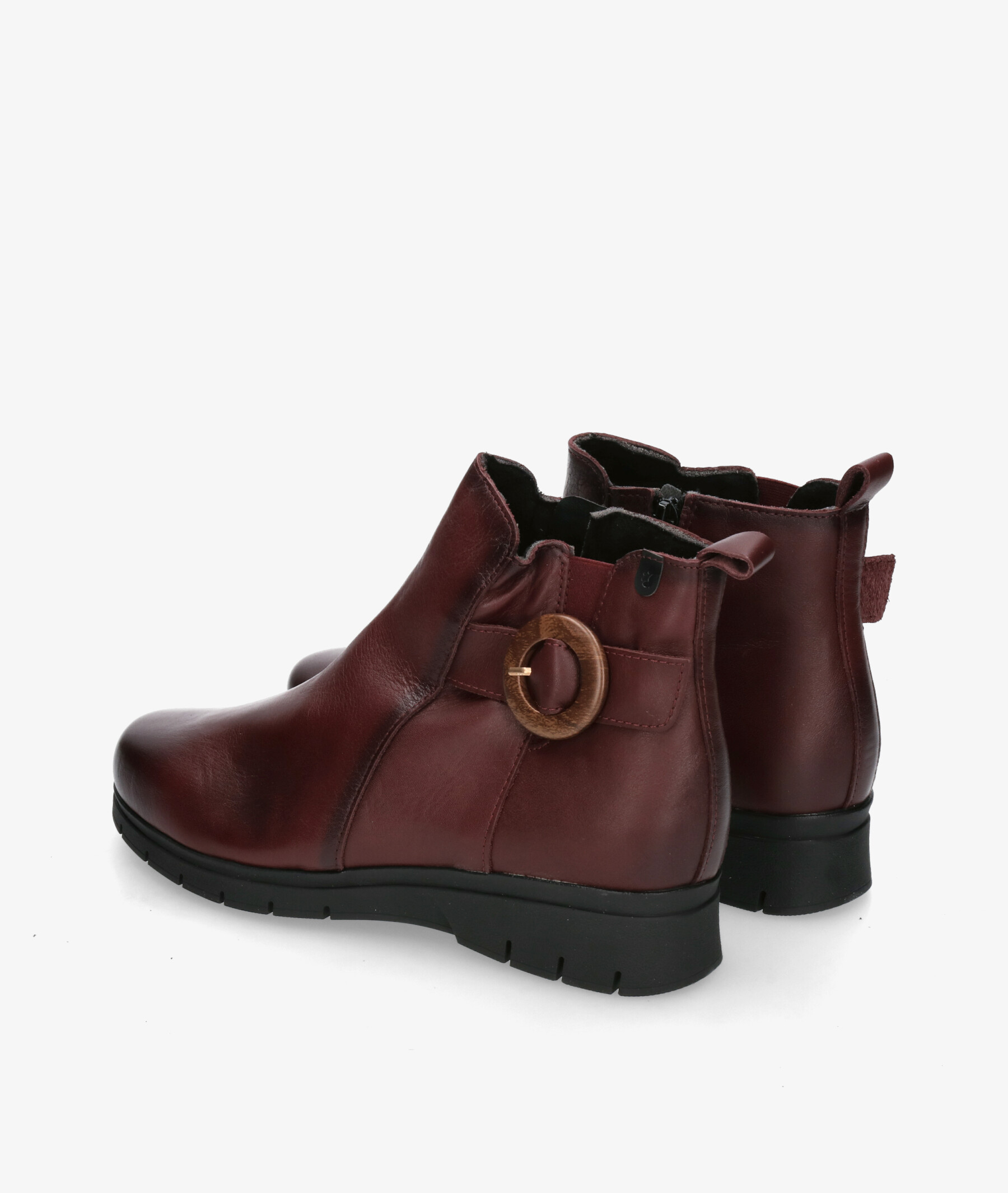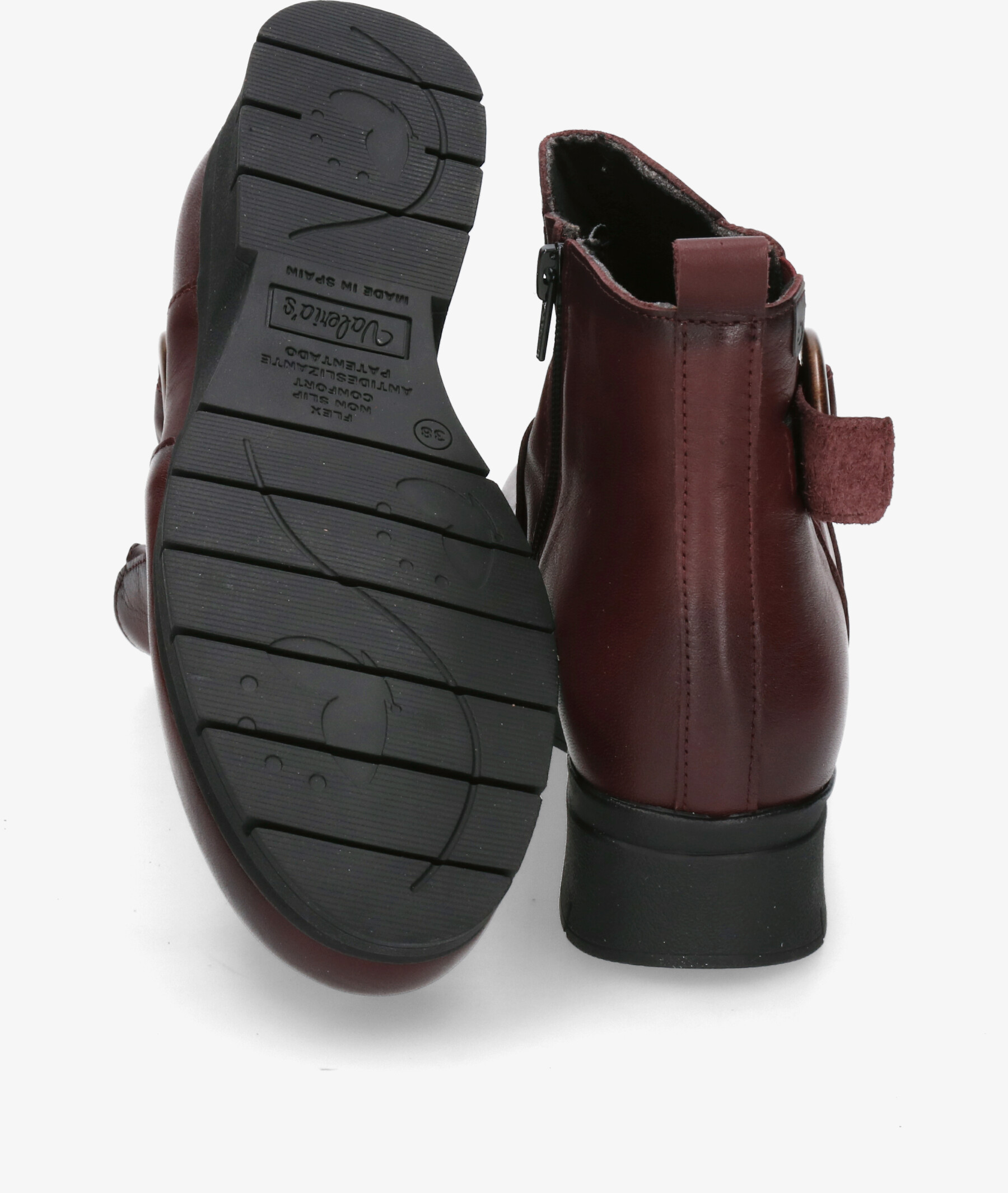 Botines Valeria´s 2389 en burdeos. Cuña 3,5cm. Cierre con cremallera en la parte interior. La plantilla es extraible. Hecho en España.