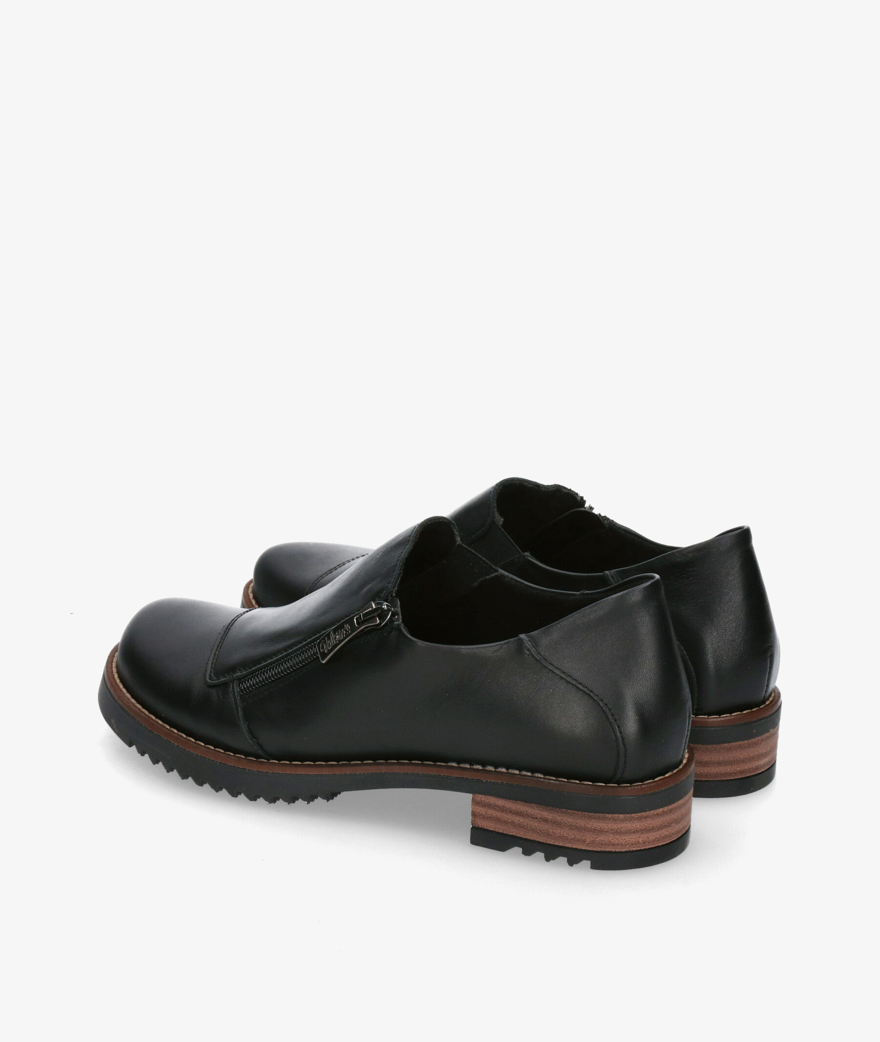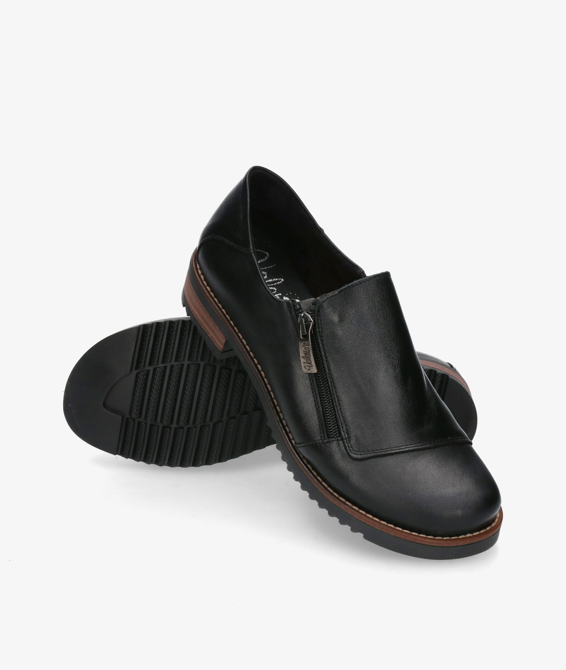 Zapatos planos Valeria´s 2301 en negro. Altura tacón 3cm. Cierre con cremallera en la parte exterior. La plantilla es extraible. Hecho en España.