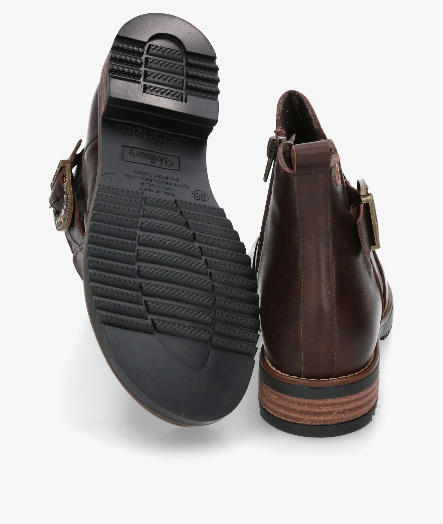 Botines Valeria´s 2305 en marrón. Altura tacón 3cm. Cierre con cremallera en la parte interior. La plantilla es extraible. Hecho en España.