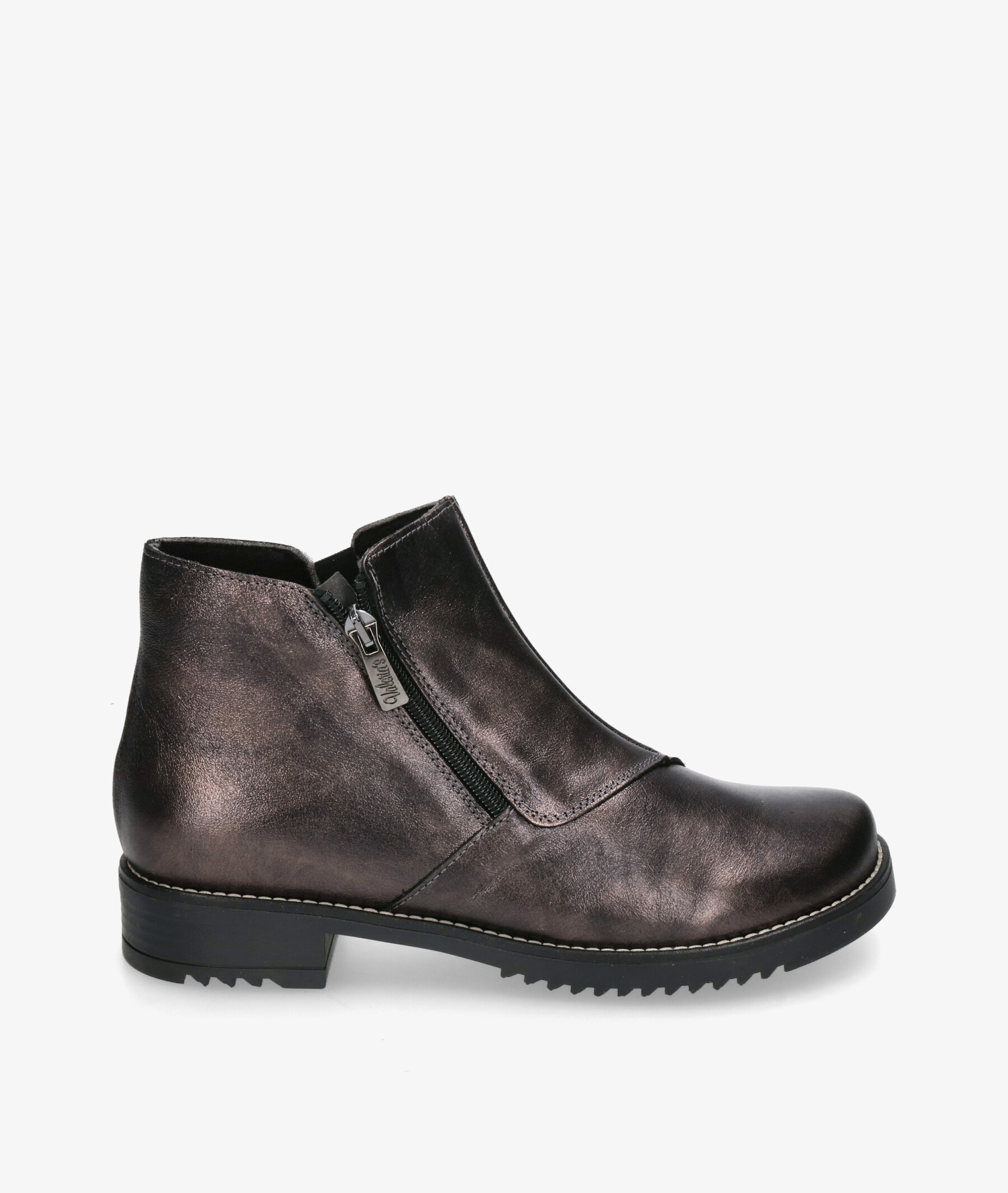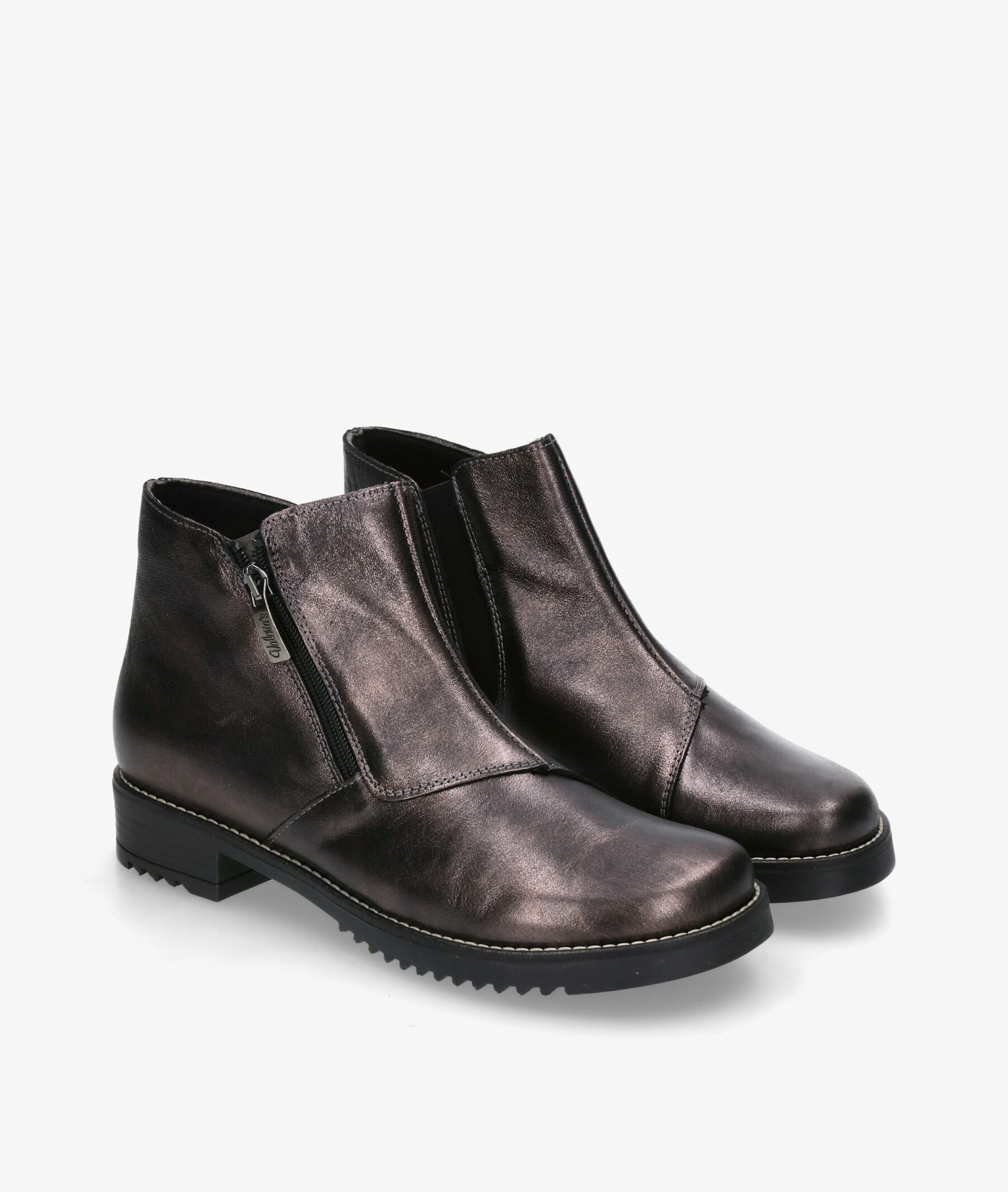 Botines Valeria´s 2310 en plomo. Altura tacón 3cm. Cierre con cremallera en la parte exterior. La plantilla es extraible. Hecho en España.