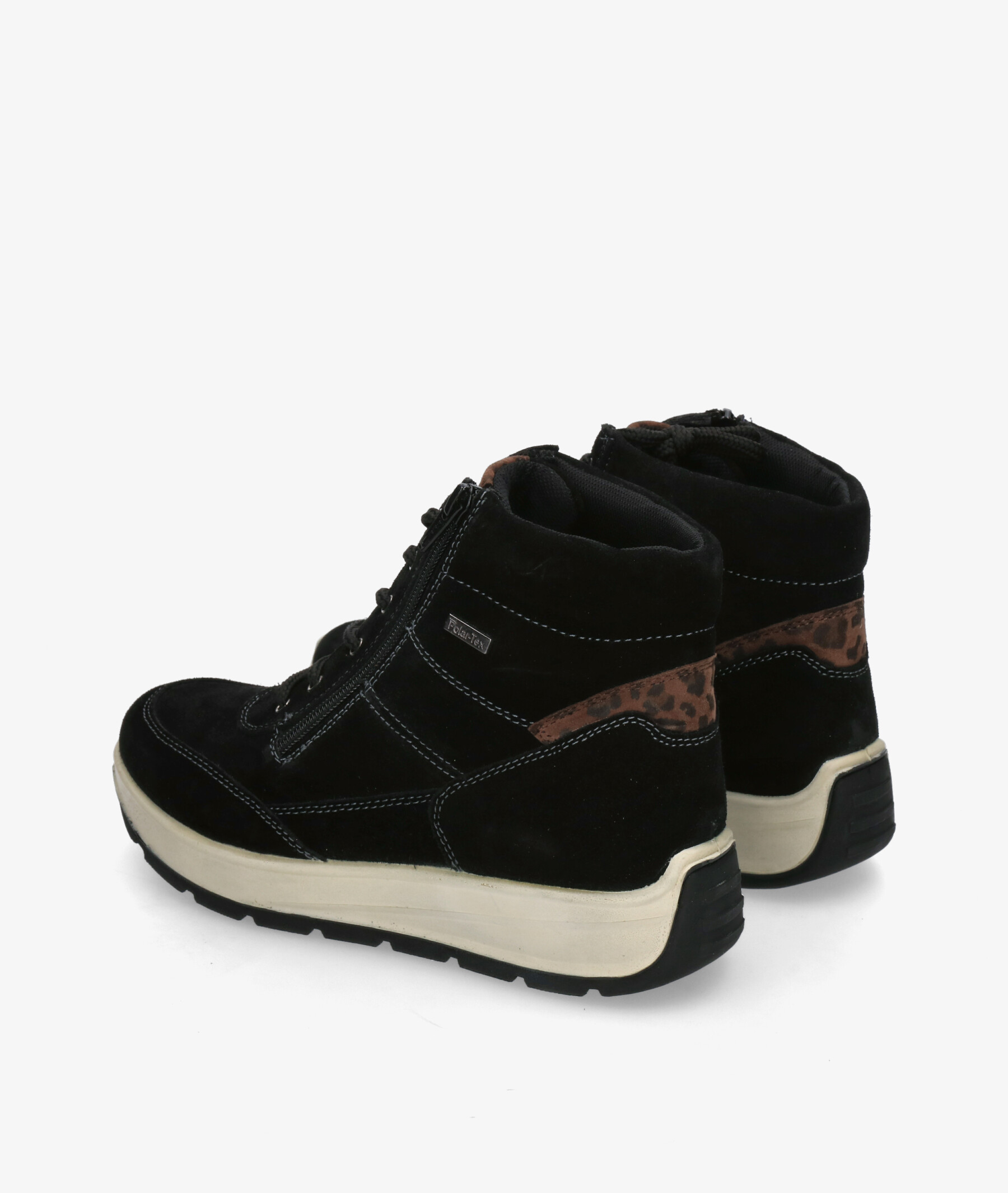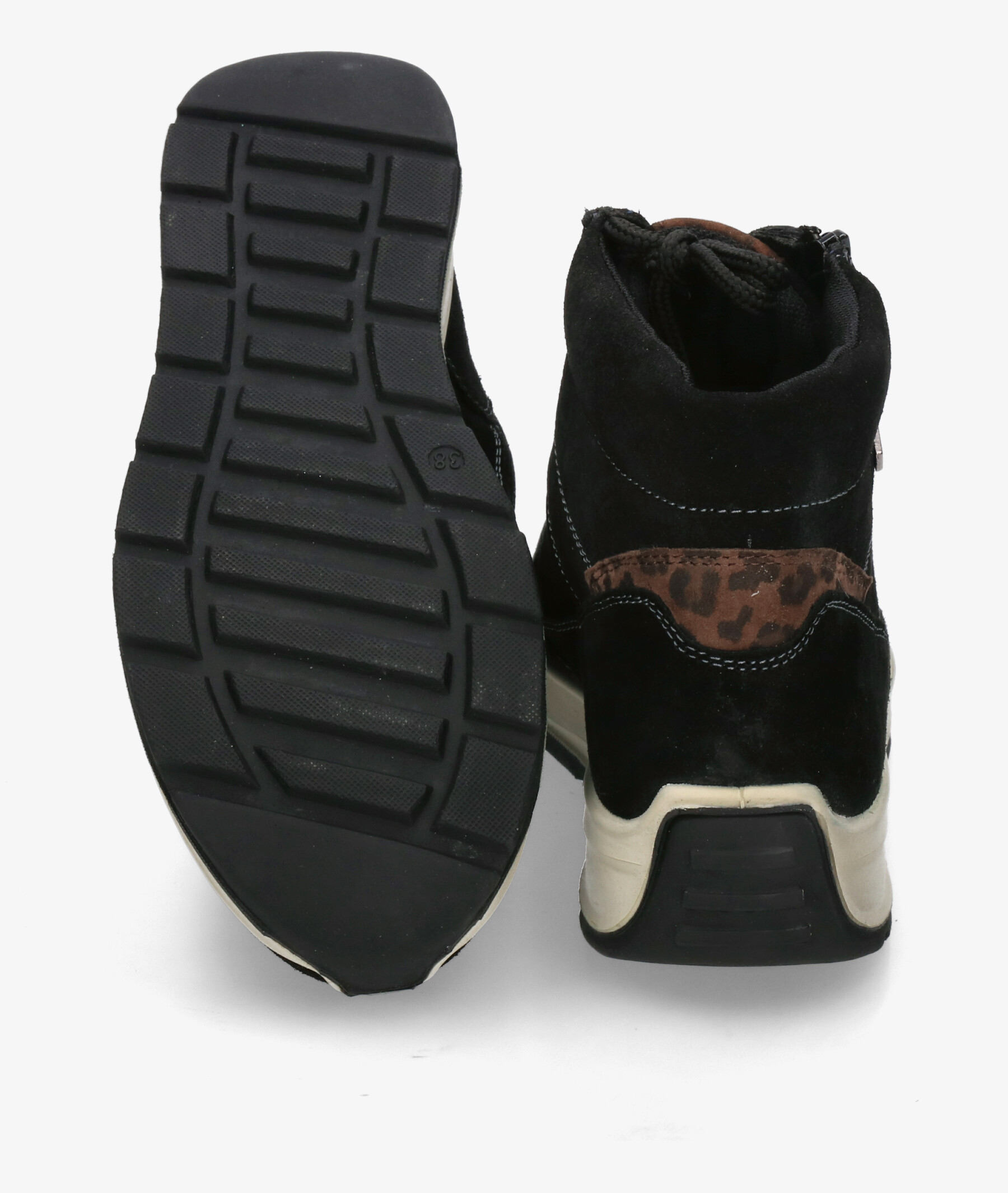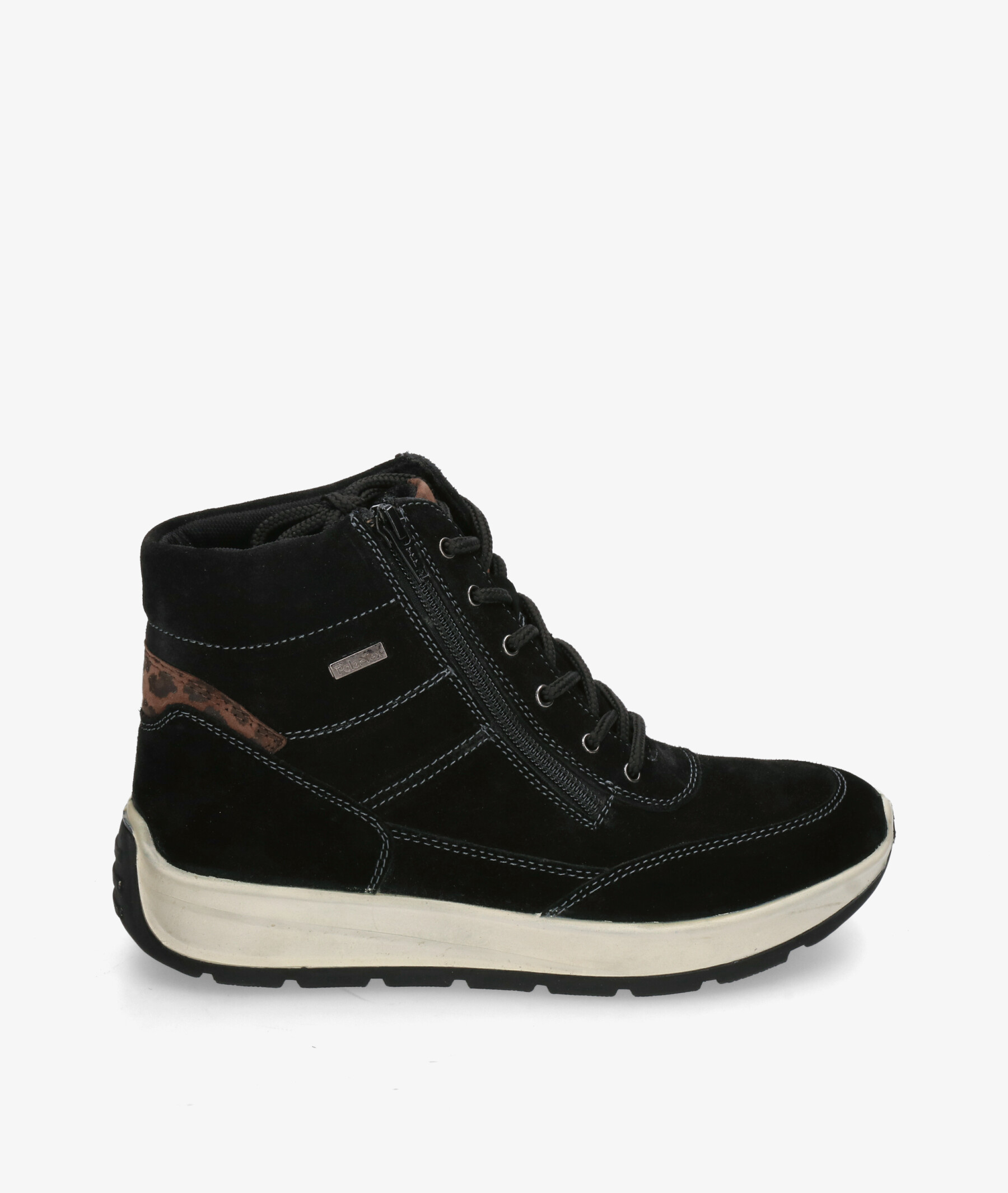 Botines St. Gallen SOFI-02 en serraje negro. Cierre con cremallera y cordones. La plantilla no es extraible. Hecho en India
