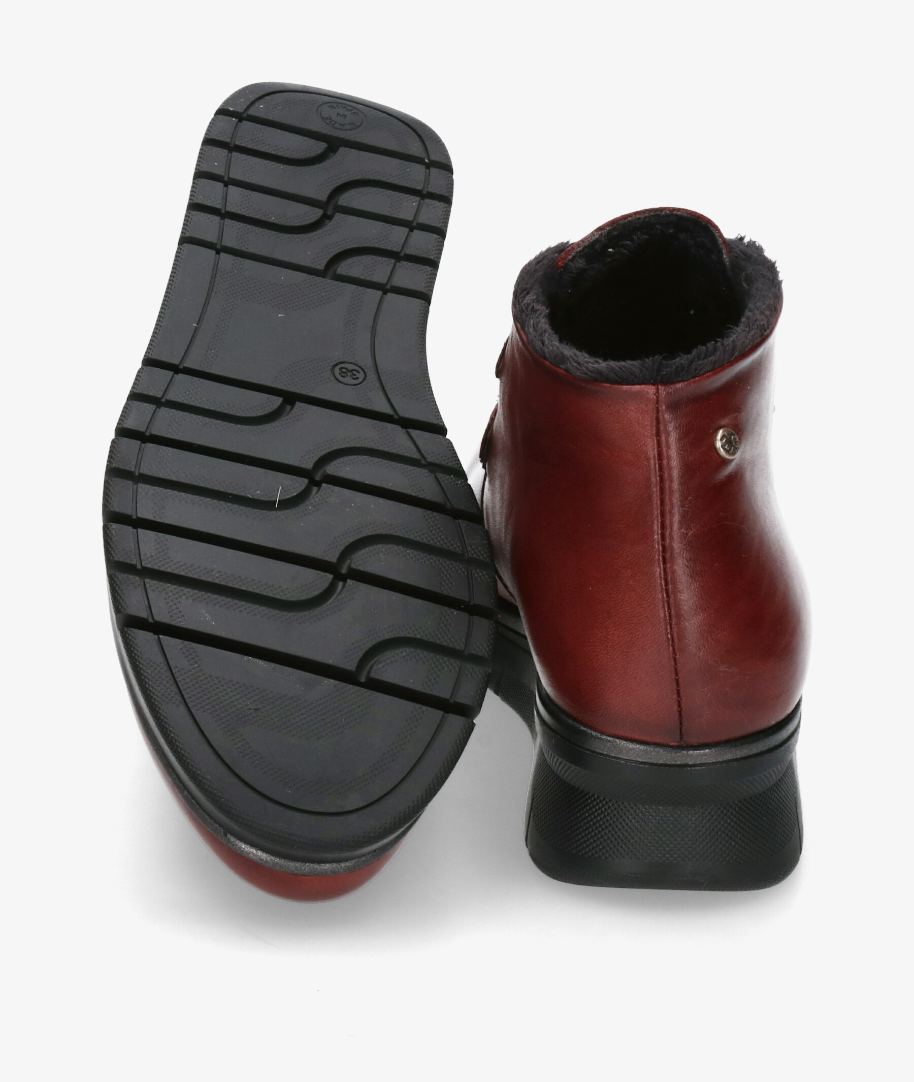 Botines pabloochoa.shoes 25660 en burdeos. Cuña 3,5cm. Cierre con cordones. La plantilla no es extraible. Hecho en España.