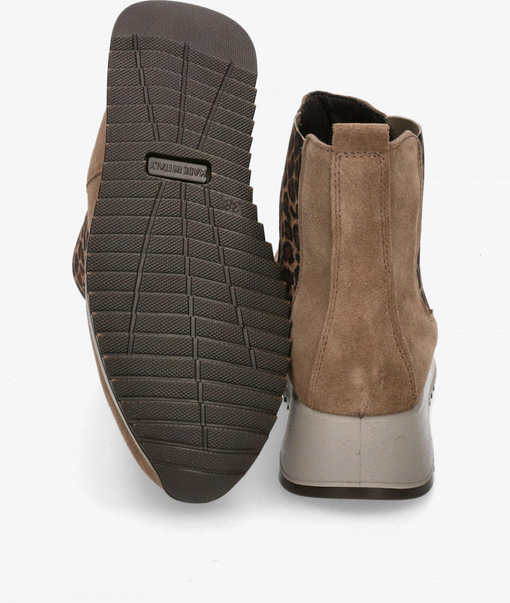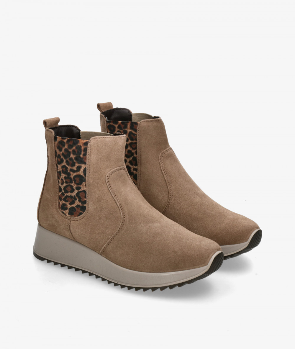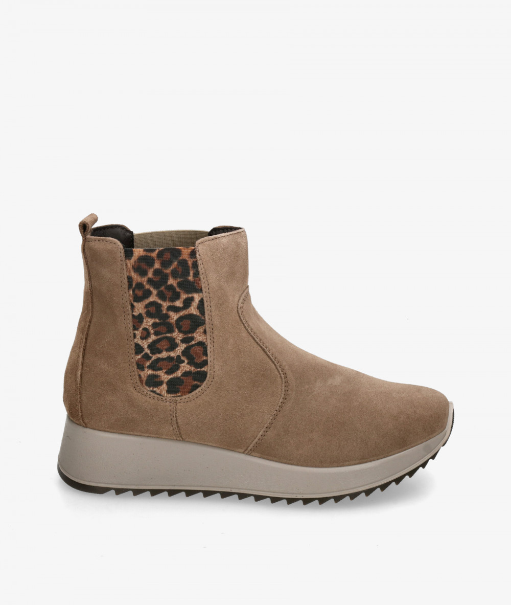 Botines Imac 858261 en serraje taupe. Cuña 4cm, plataforma 2cm Cierre con elásticos . La plantilla es extraible. Hecho en Italia.