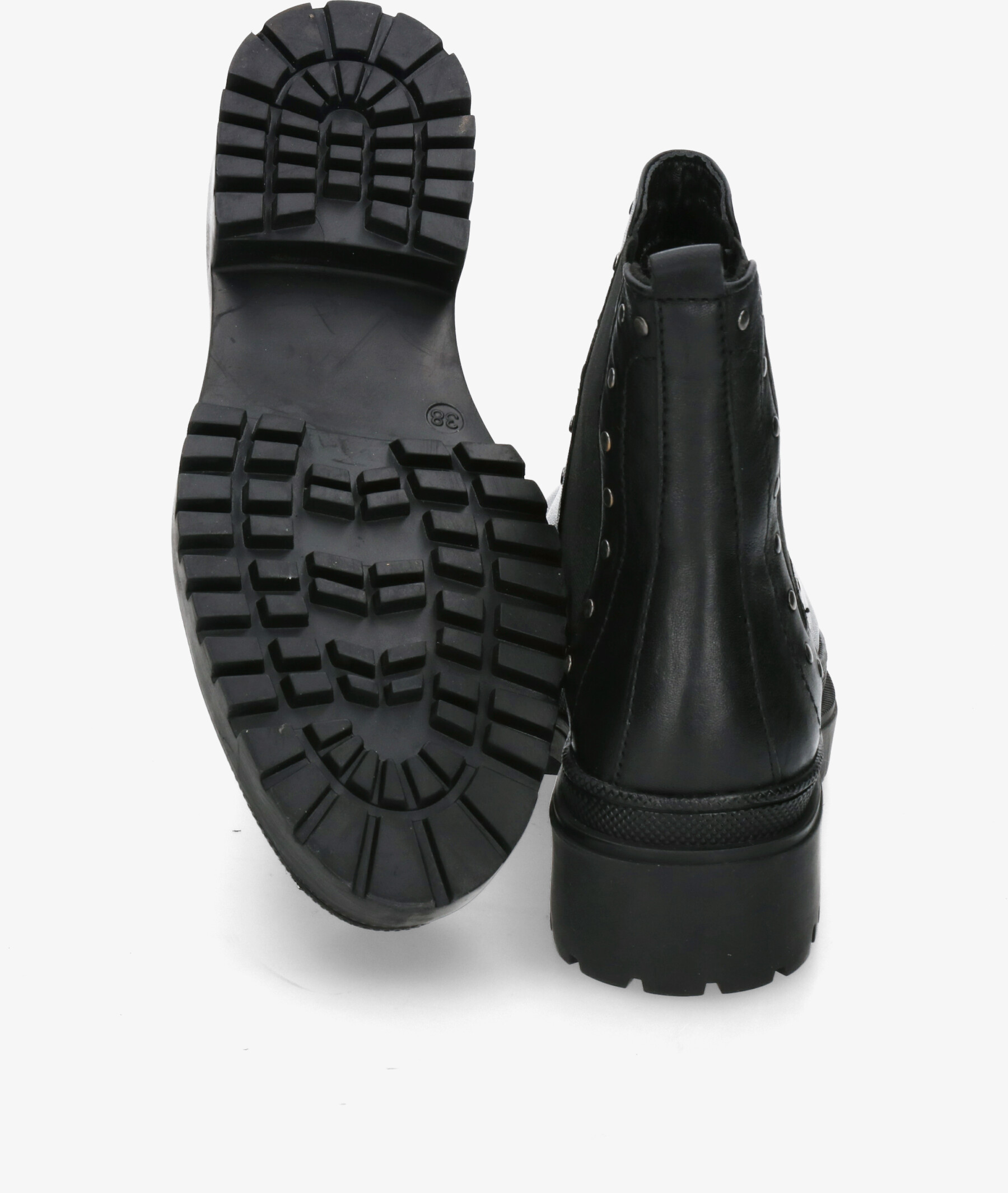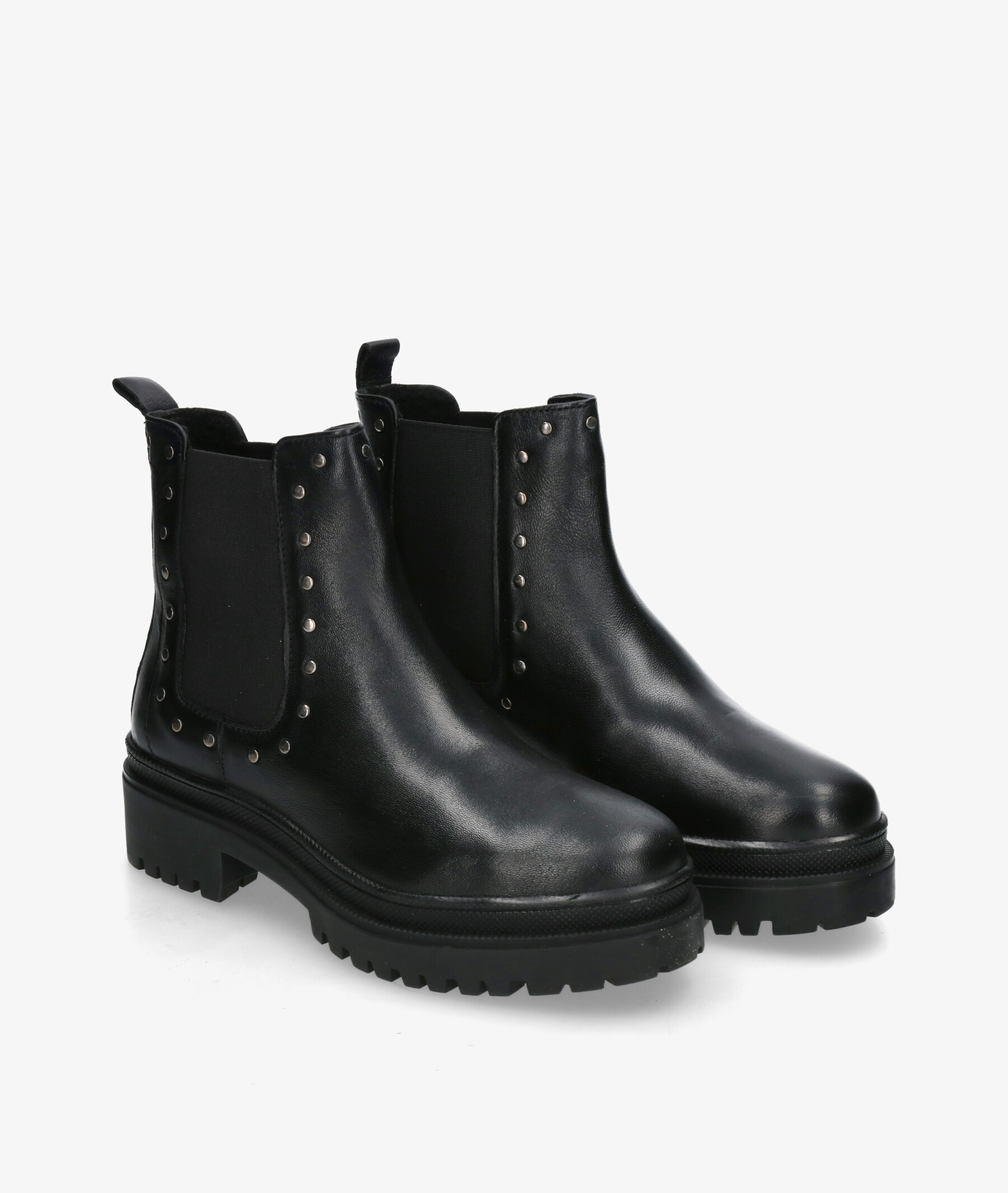 Botines St. Gallen BRONSON-02 en negro. Tacón 3,5 cm. Plataforma 2 cm. Cierre con elásticos . La plantilla no es extraible. Hecho en India
