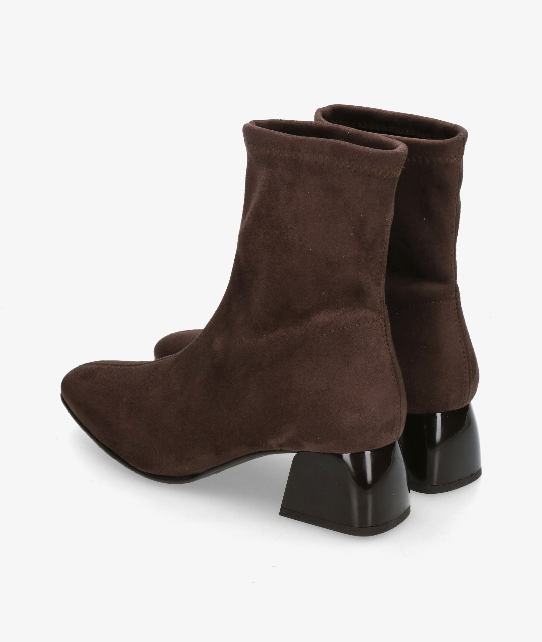 Botines pabloochoa.shoes 78662 en MARRON LYCRA. Altura tacón 4,5cm. Sin cierre, slip on. La plantilla no es extraible. Hecho en España.