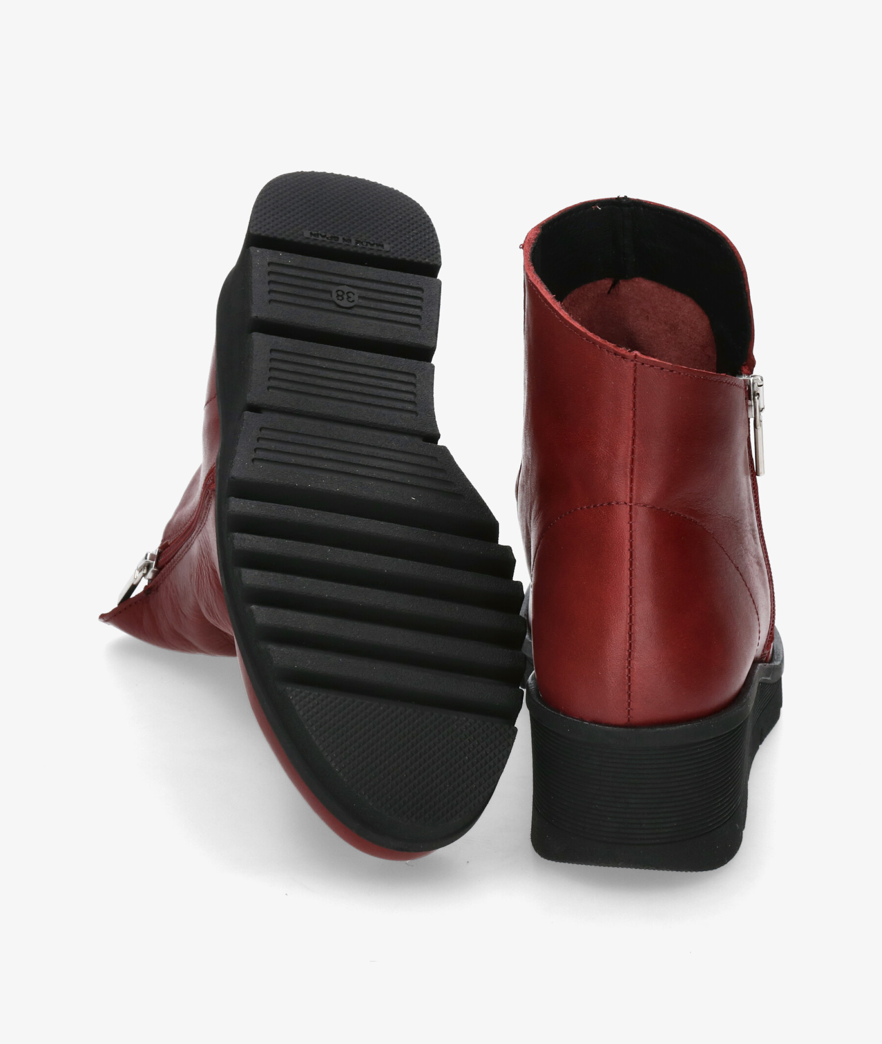 Botines pabloochoa.shoes MIA 20 en cereza. Cuña 4,5cm. Cierre con cremallera en la parte exterior. La plantilla es extraible. Hecho en España.