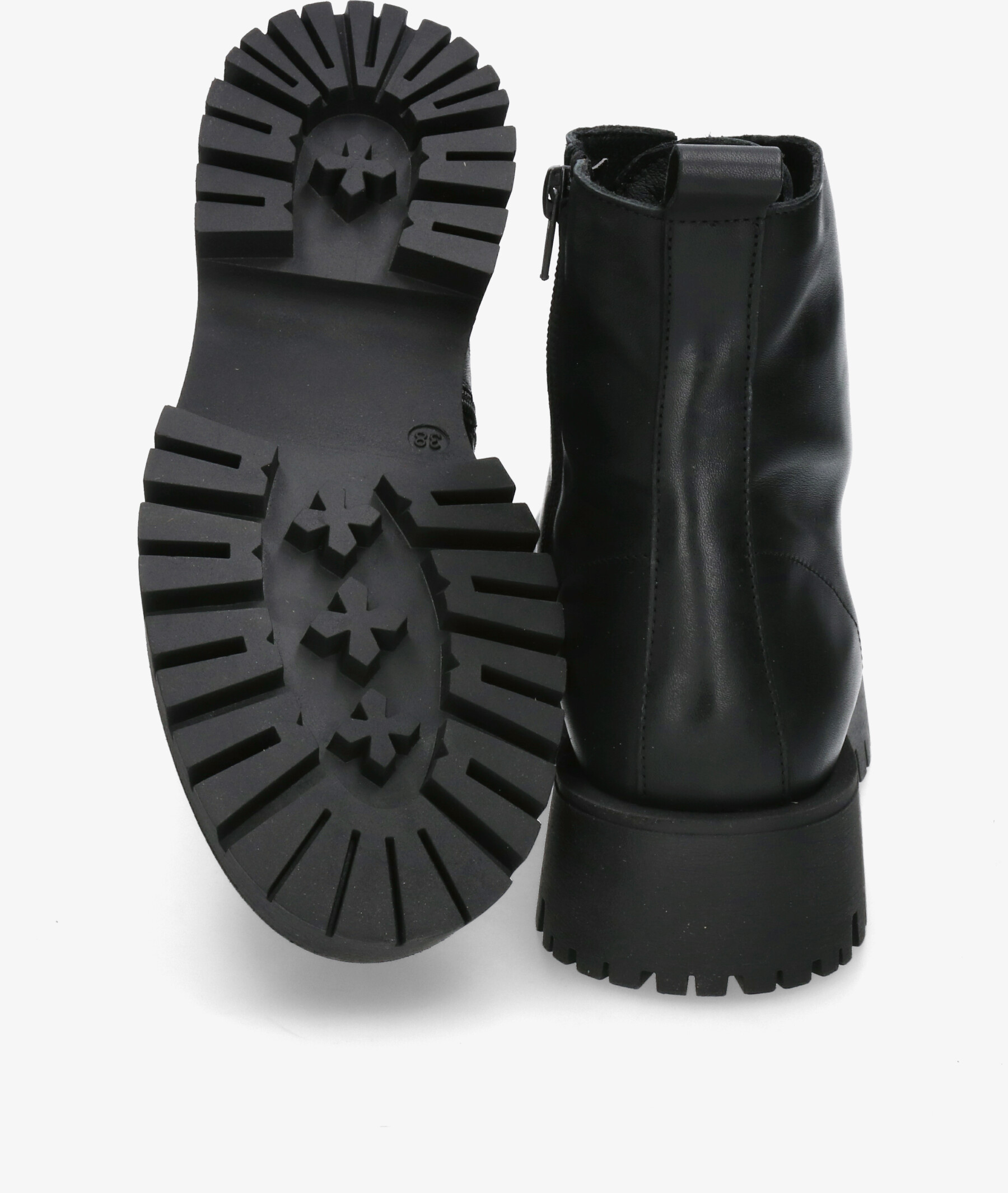 Botines pabloochoa.shoes 2060 en negro. Tacón 4cm, plataforma 2,5cm. Cierre con cremallera y cordones. La plantilla no es extraible. Hecho en Portugal